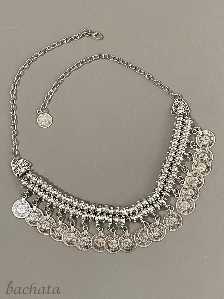 トライバル、トライバルフュージョンに最適なシルバーカラーのコインネックレスです。