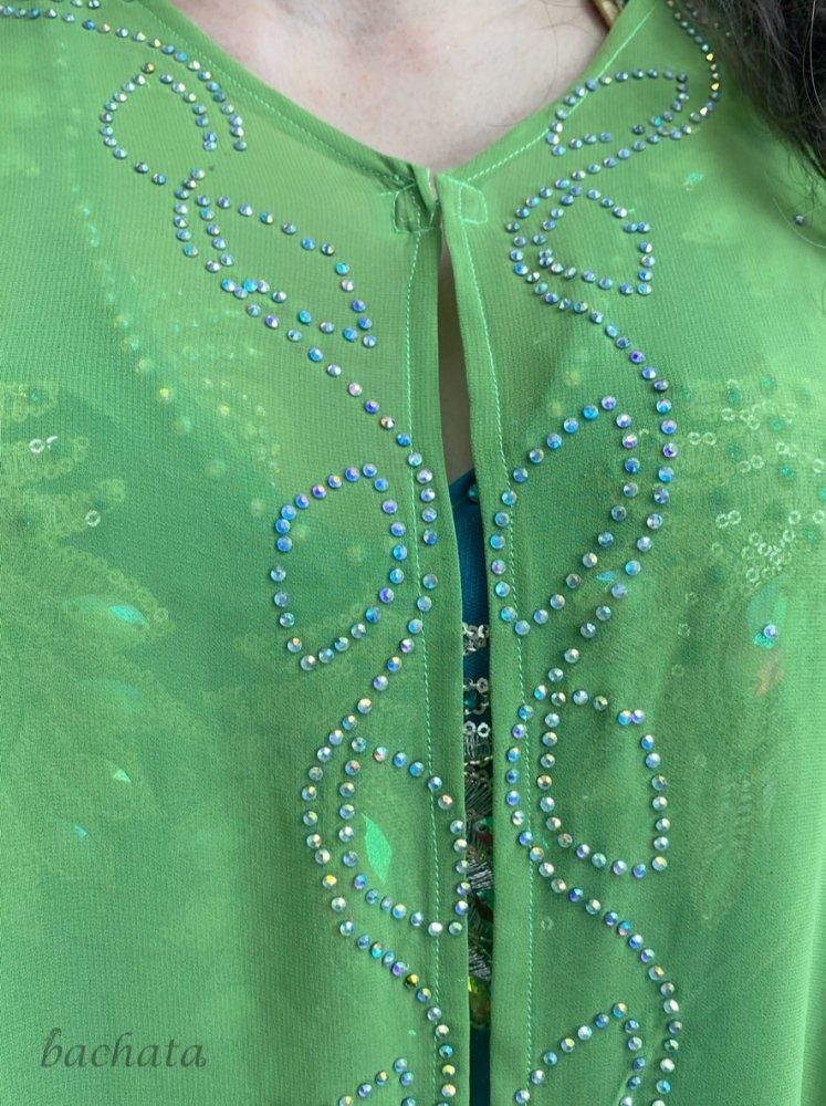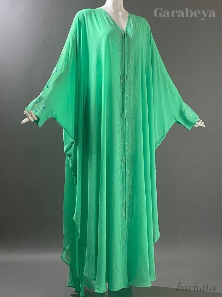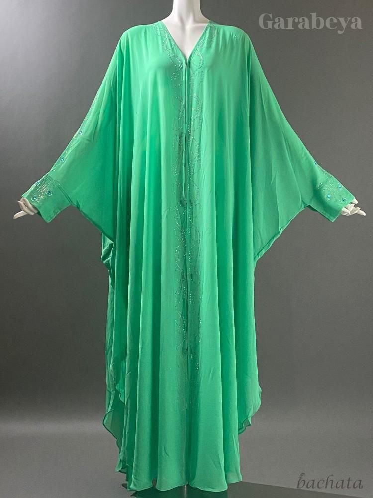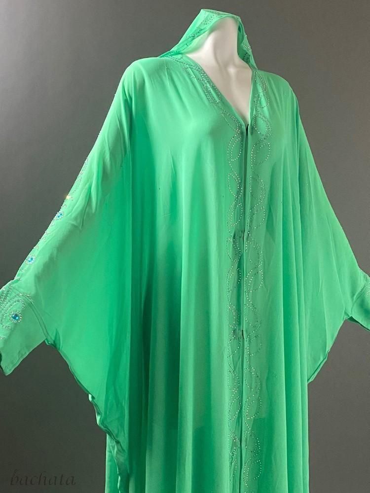 エジプト製ガラベーヤ/アバヤ 前開きタイプ・ミントグリーン (フリーサイズ) ベリーダンス衣装の羽織ものに!