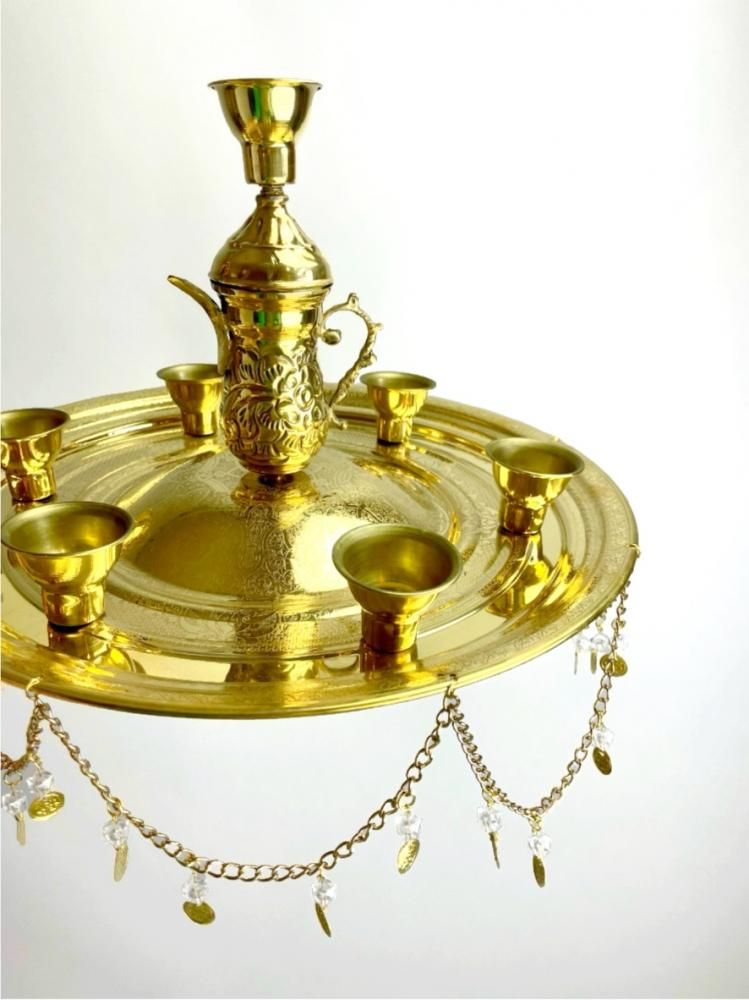 エジプト製のトレイ(お盆)シャマダンです。キャンドルを点け、頭にのせて使用します。
