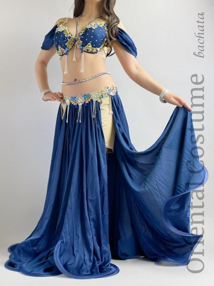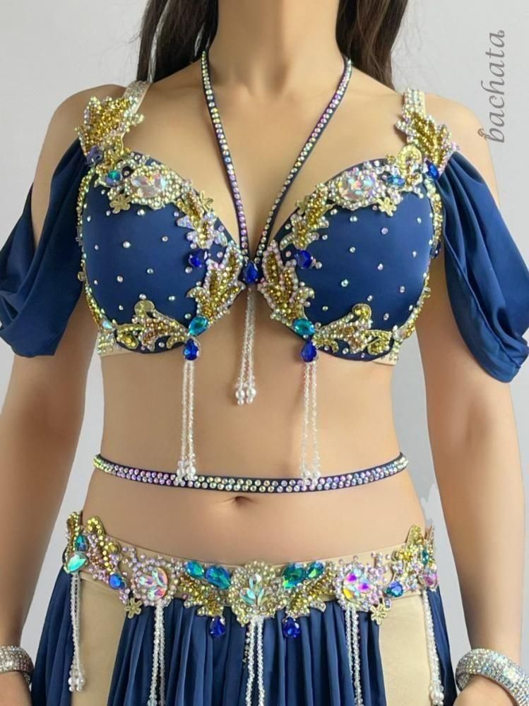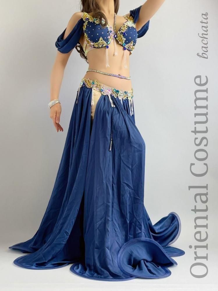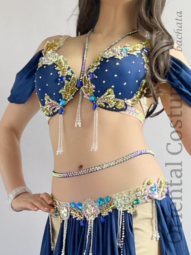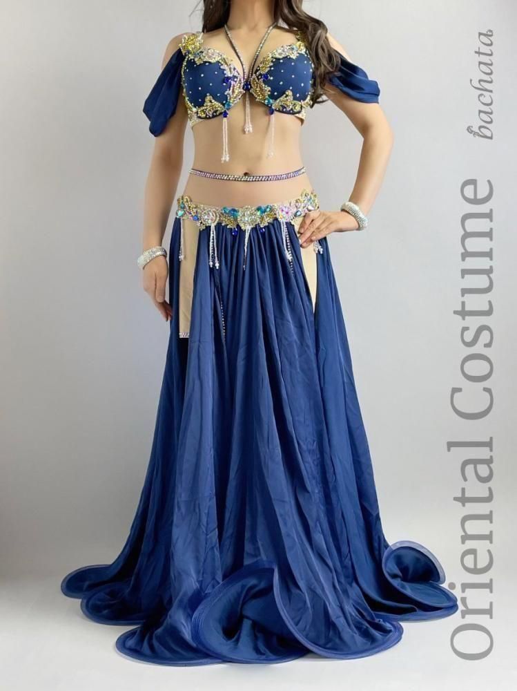 ベリーダンス衣装には珍しいネイビーカラーの衣装です。
