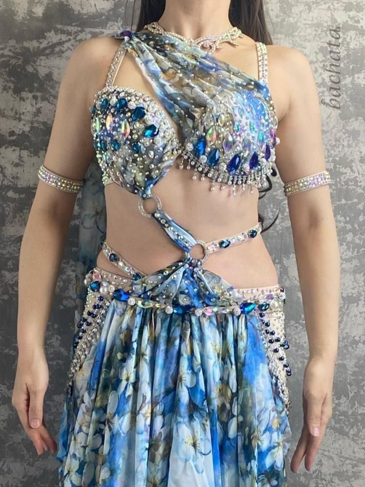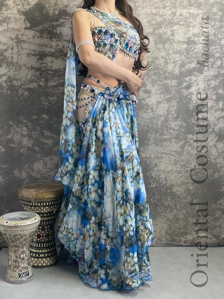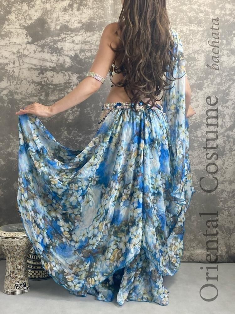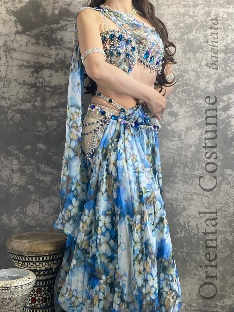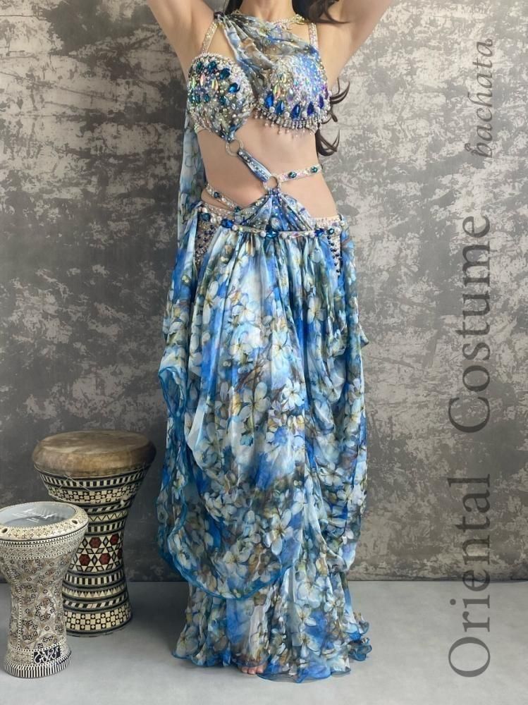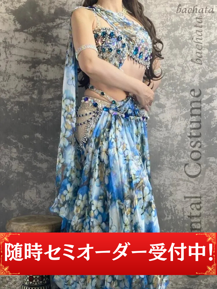 ◆サイズオーダー◆ベリーダンス衣装 ブルー花柄 CT0099 *nstk