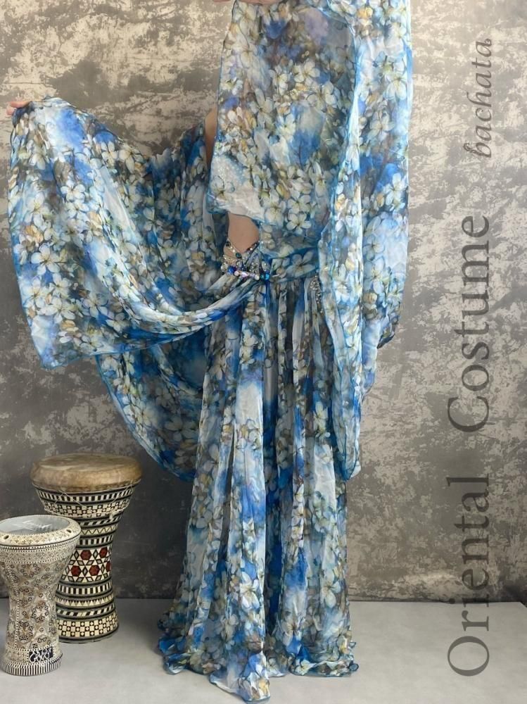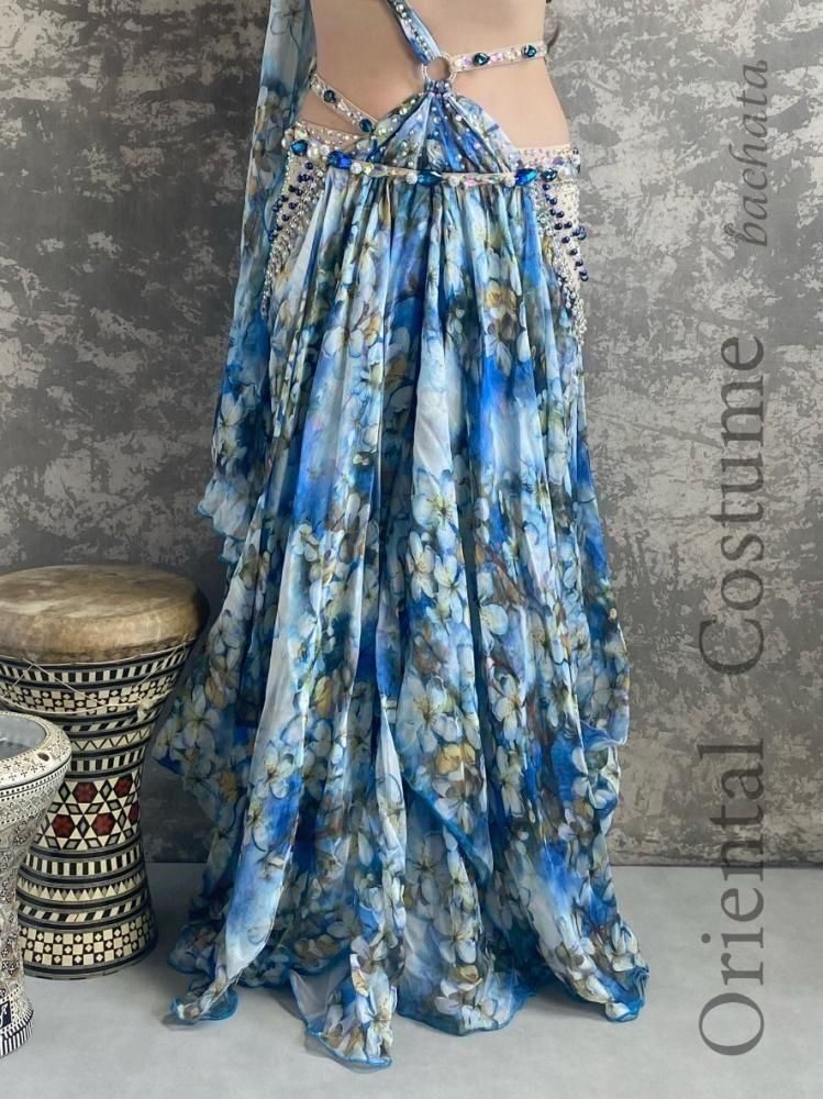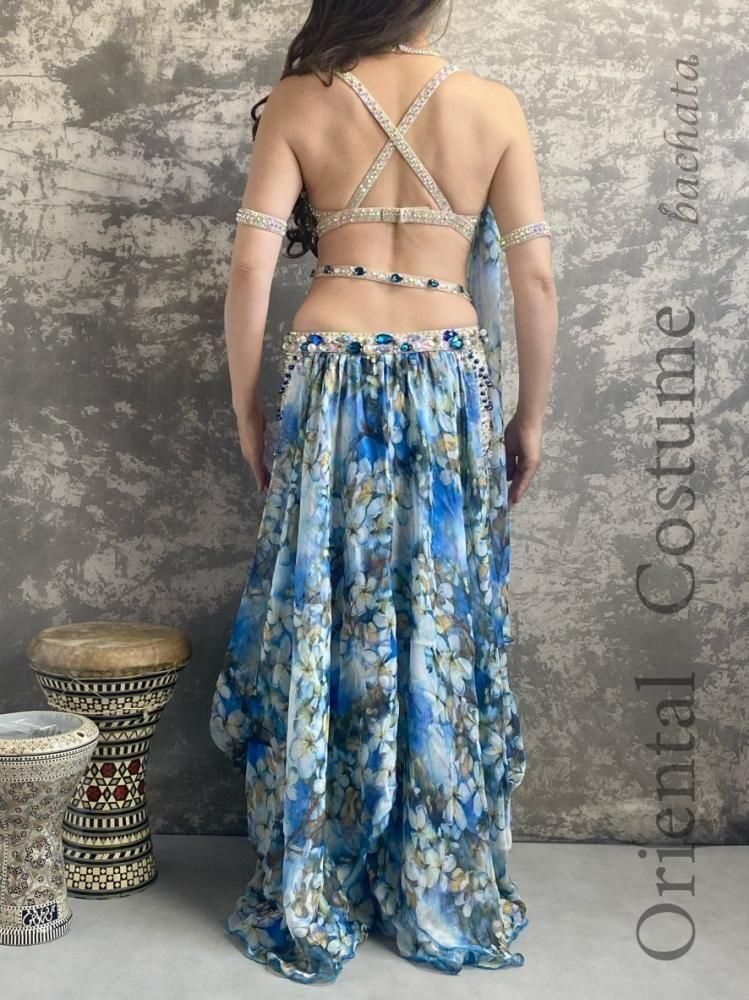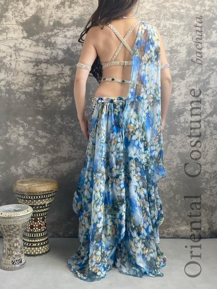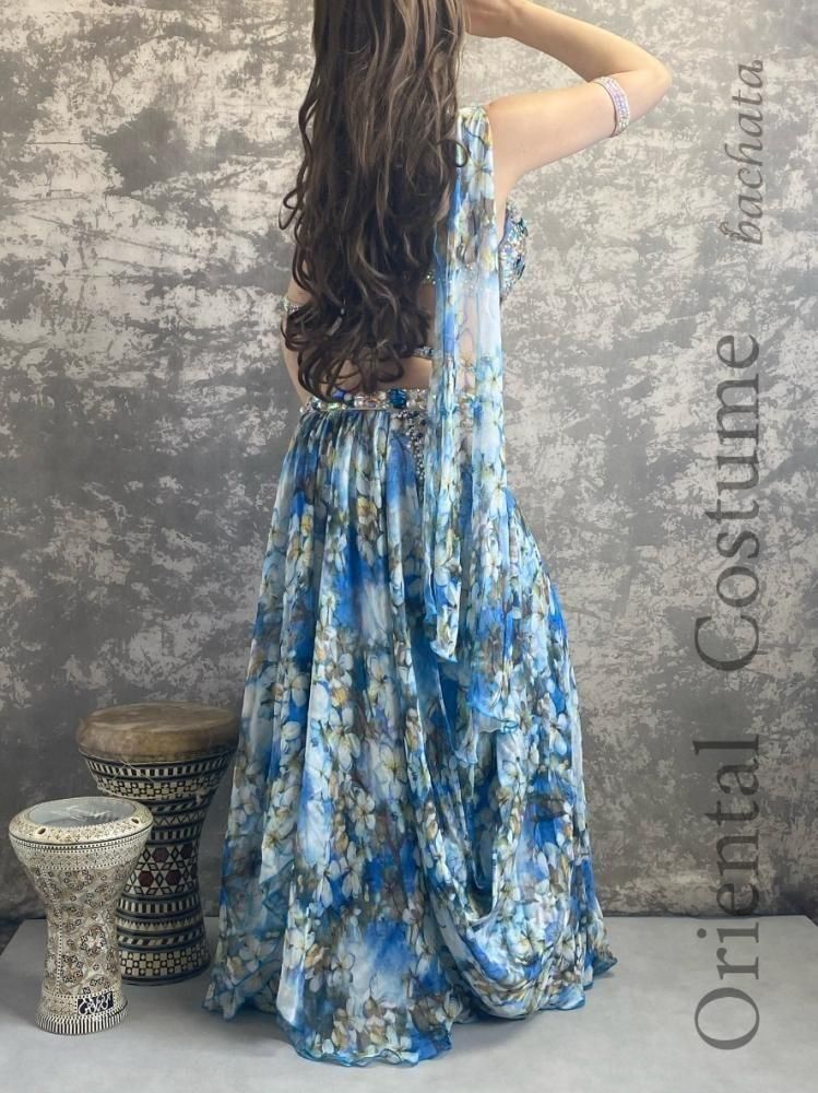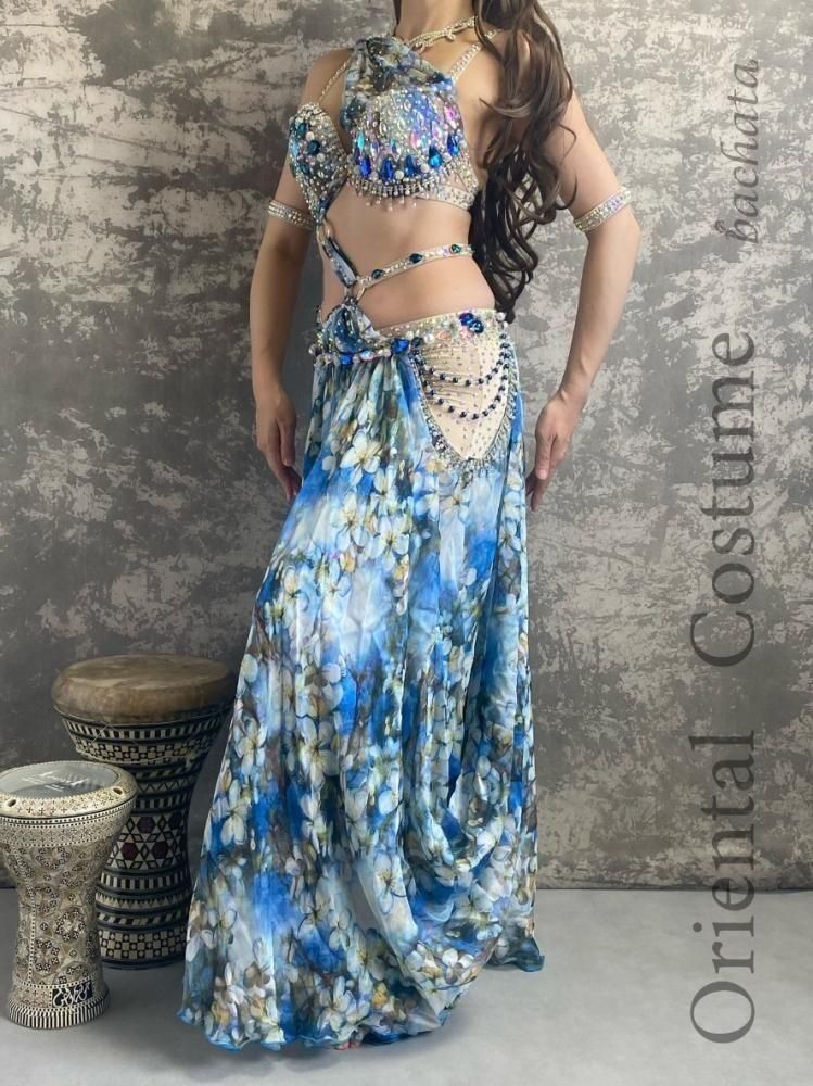 ◆サイズオーダー◆ベリーダンス衣装 ブルー花柄 CT0099 *nstk