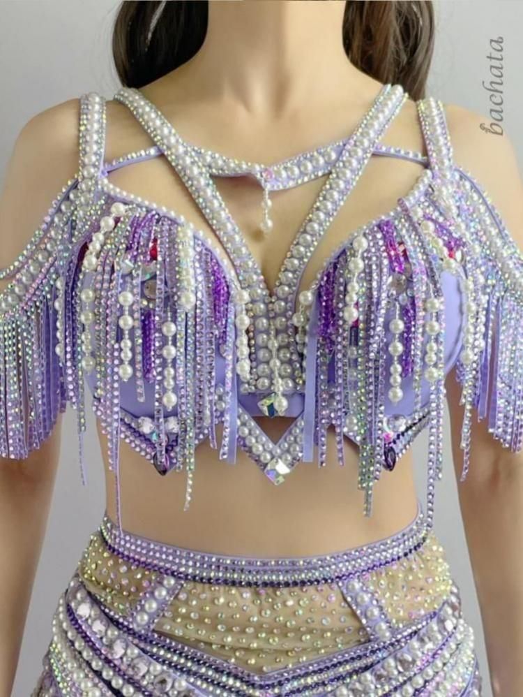 カラフルな大振りストーンとパールの組み合わせが個性的なハイウエストタイプの衣装です。