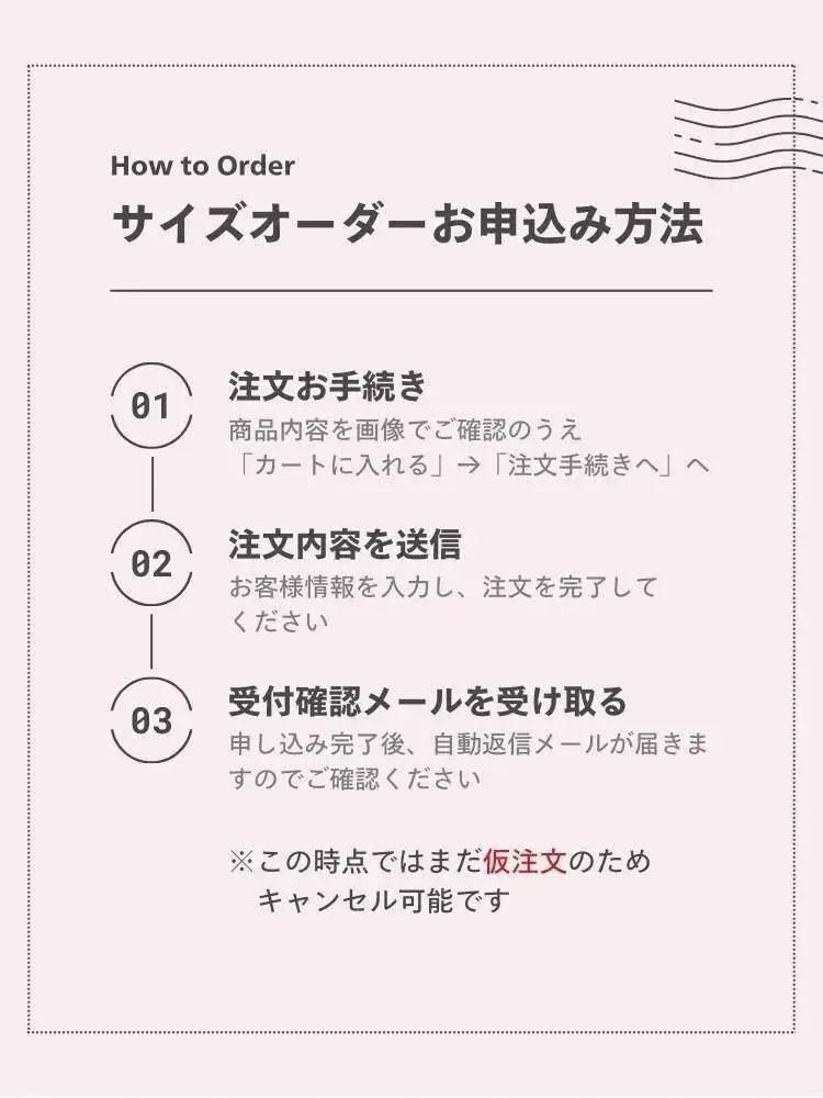 お支払い完了後、サイズをご連絡いただいた時点で正式に発注となります。