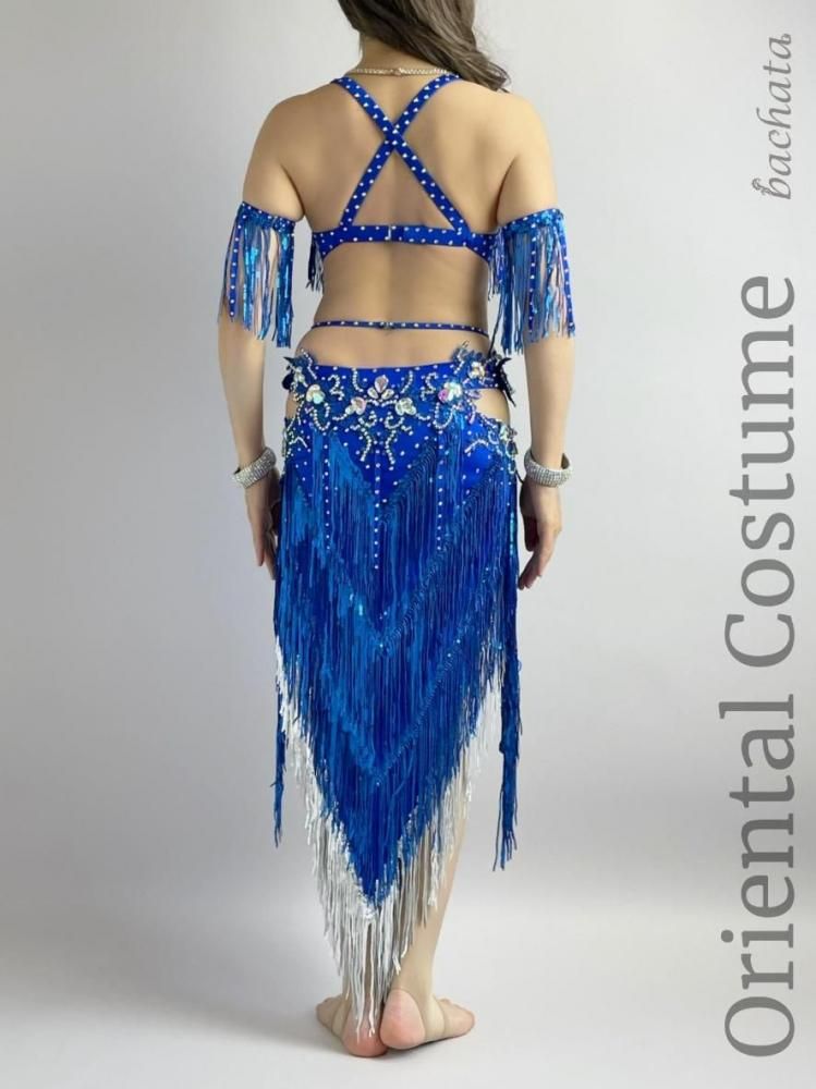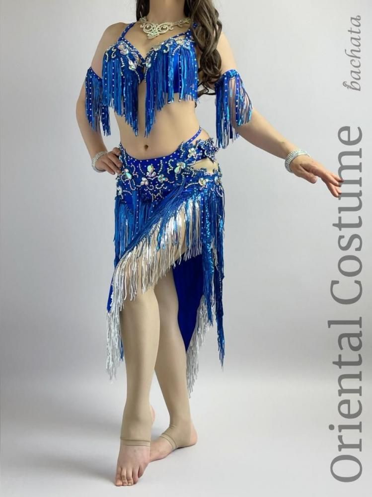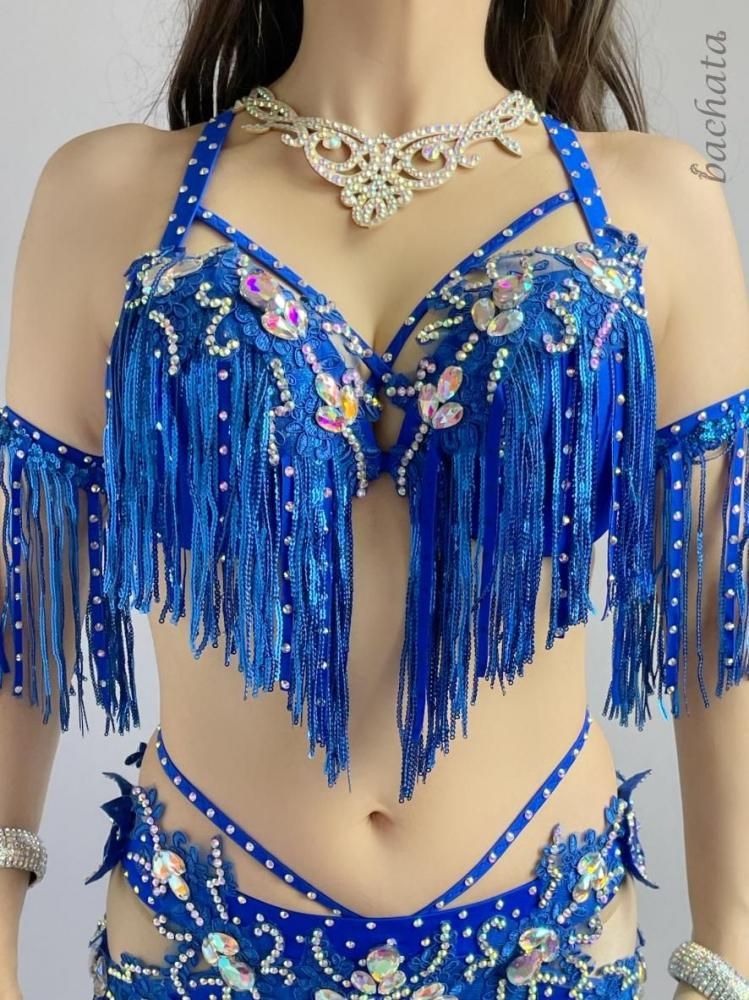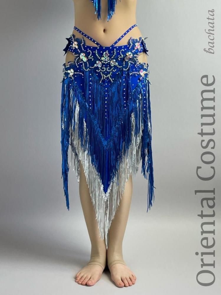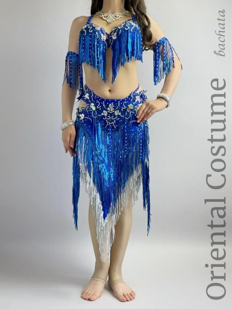 ◆サイズオーダー◆ベリーダンス衣装 ロイヤルブルーシルバーフリンジ CT0210 *nstk