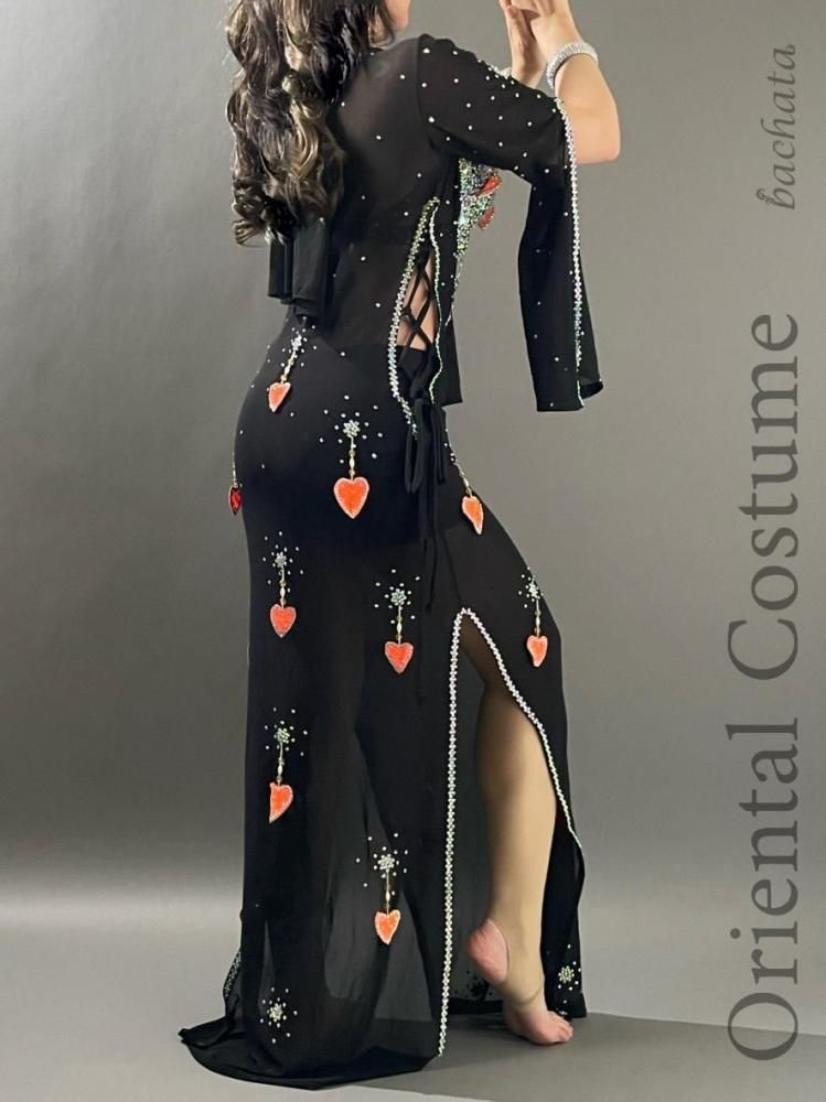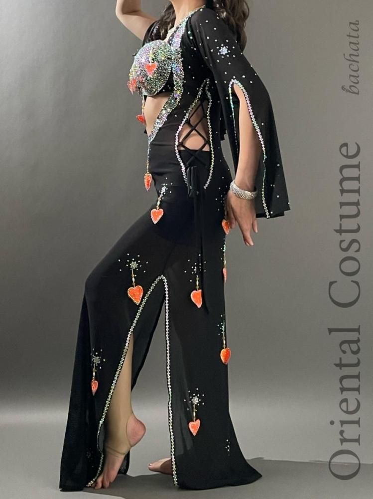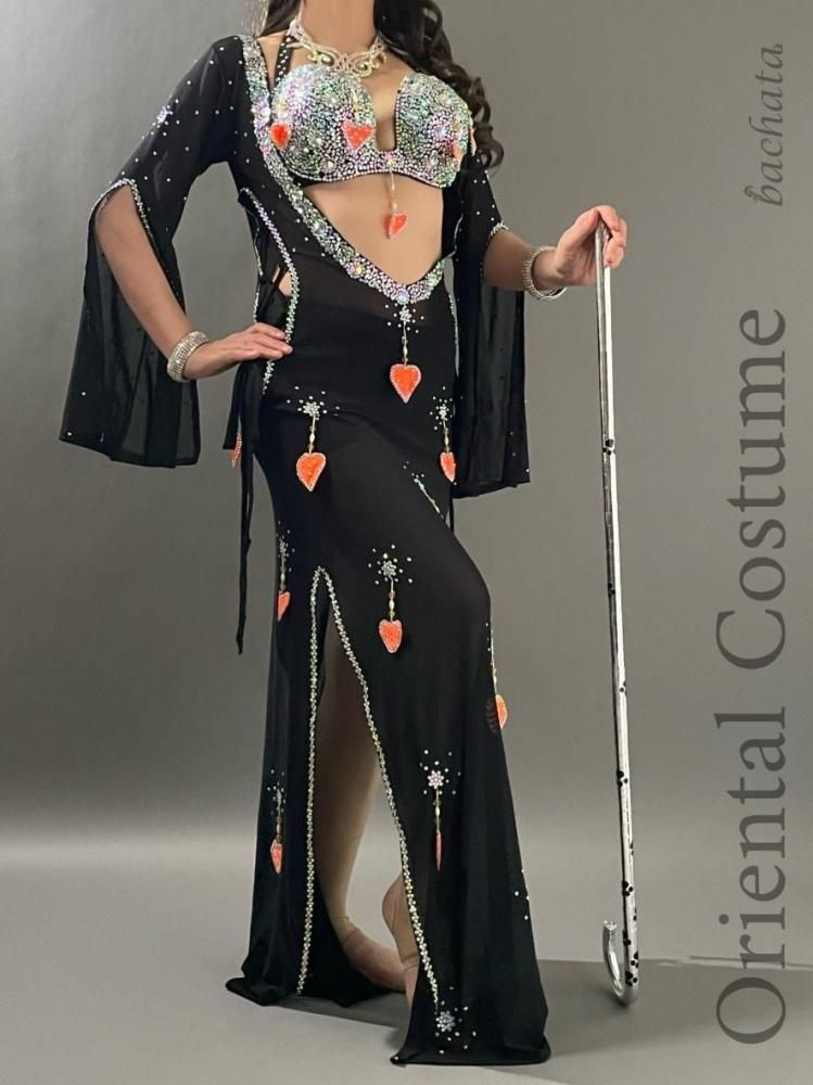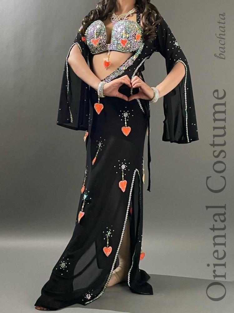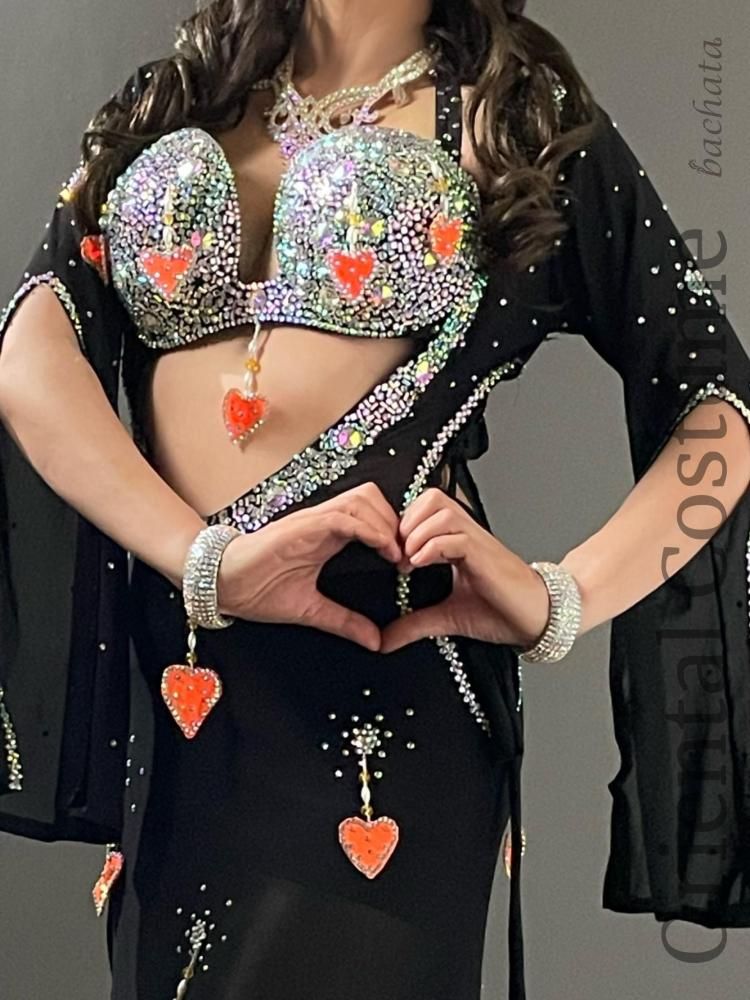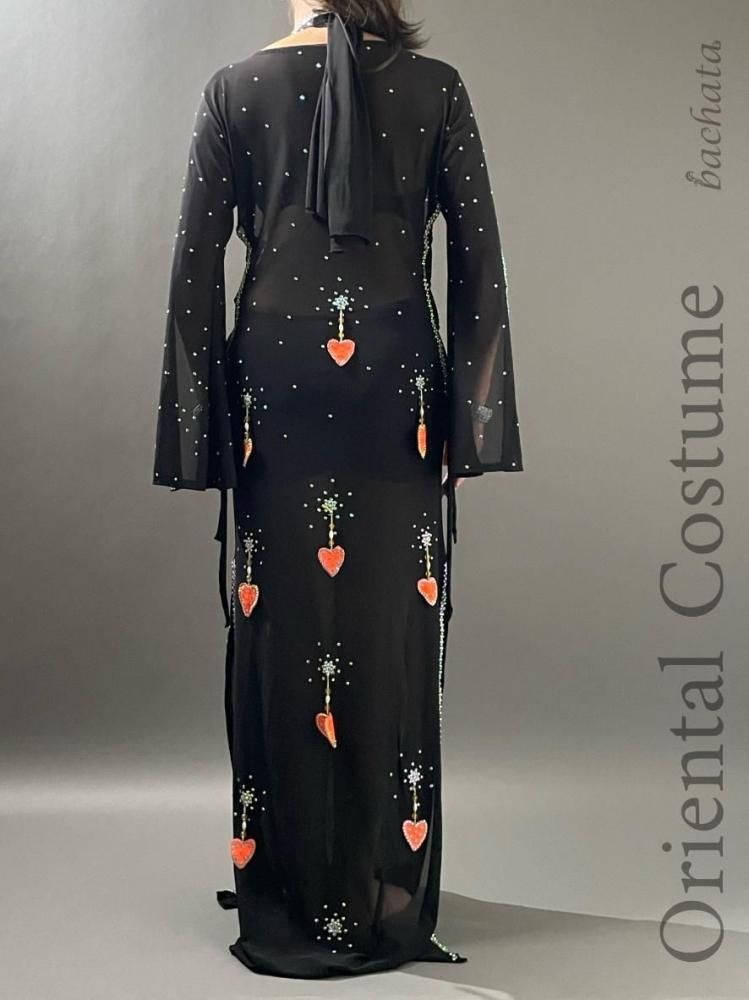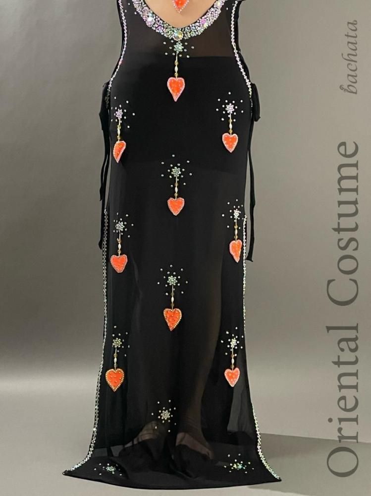 透け感のあるブラックに、オレンジのハートが散りばめられた遊び心あふれるワンピースタイプの衣装♡