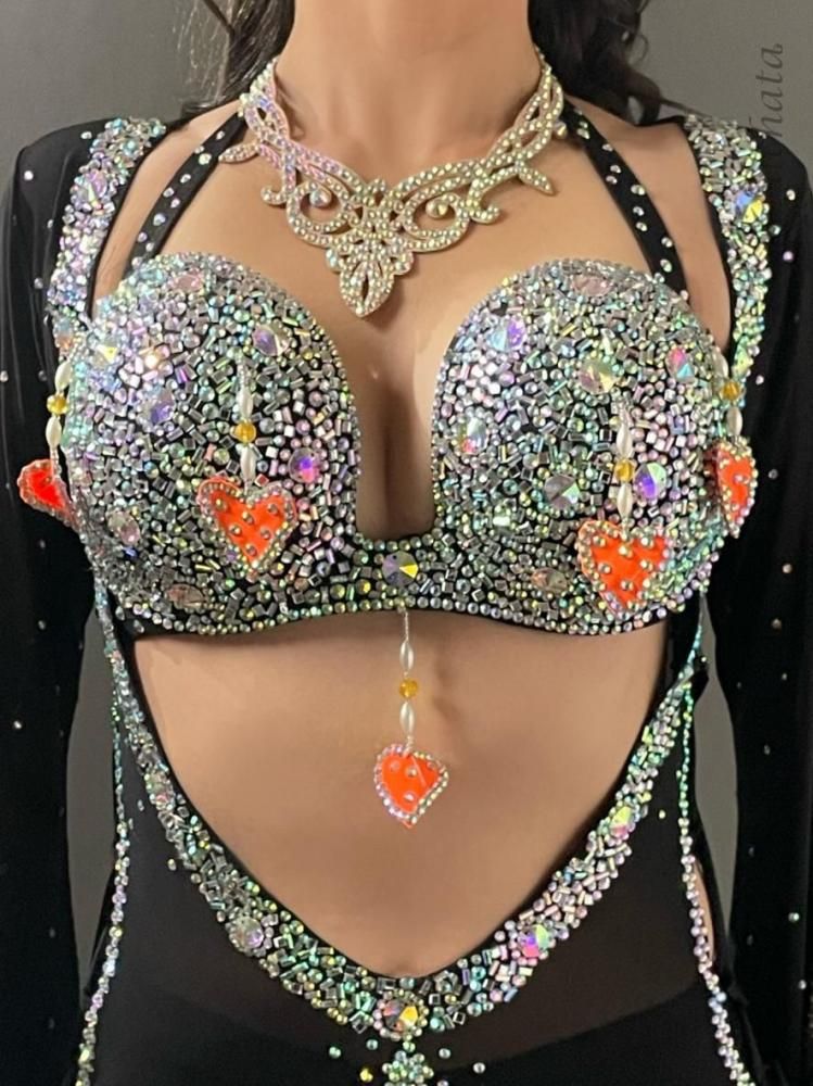 胸元のブラはキラキラ輝くストーンでゴージャス仕上げ。