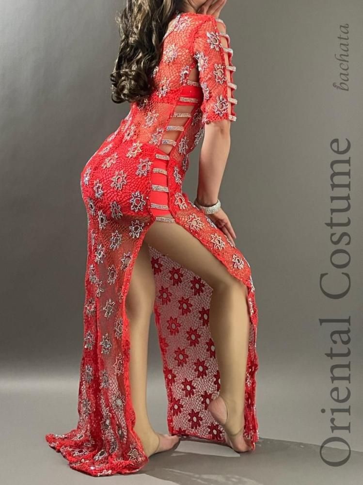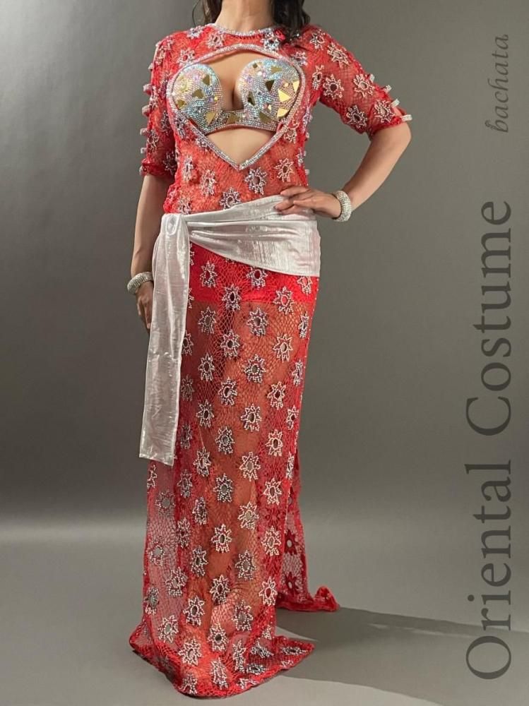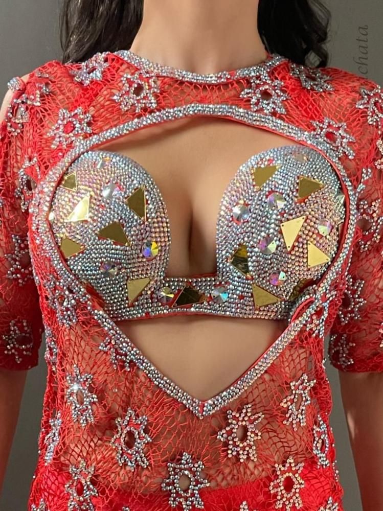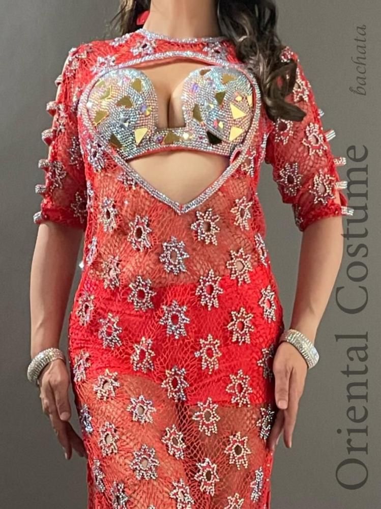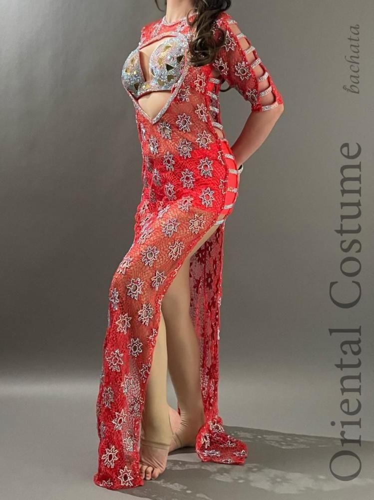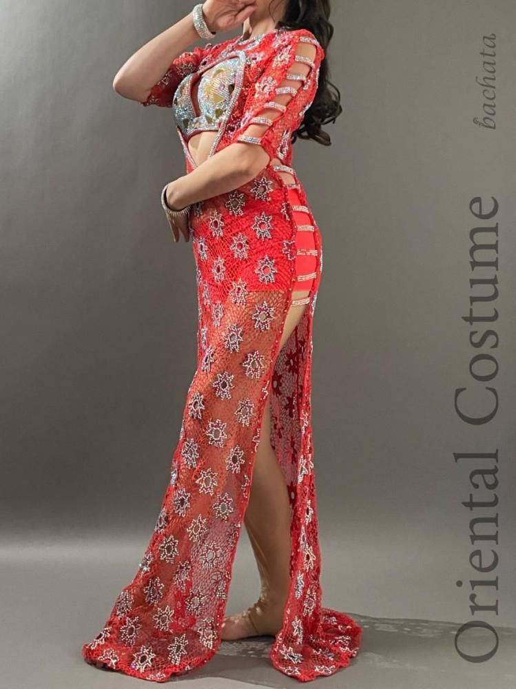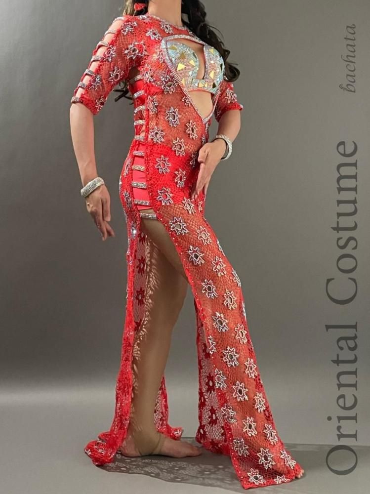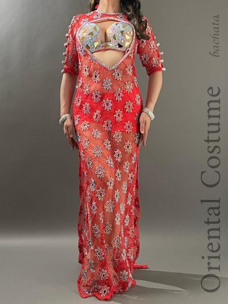 エジプト衣装らしい、たっぷりのストーンが輝く総メッシュのワンピースタイプの衣装です。