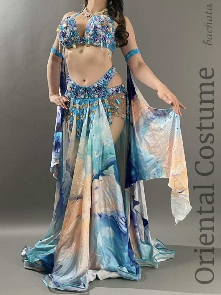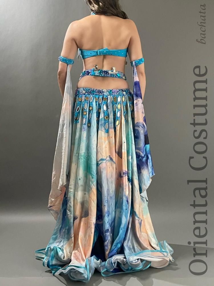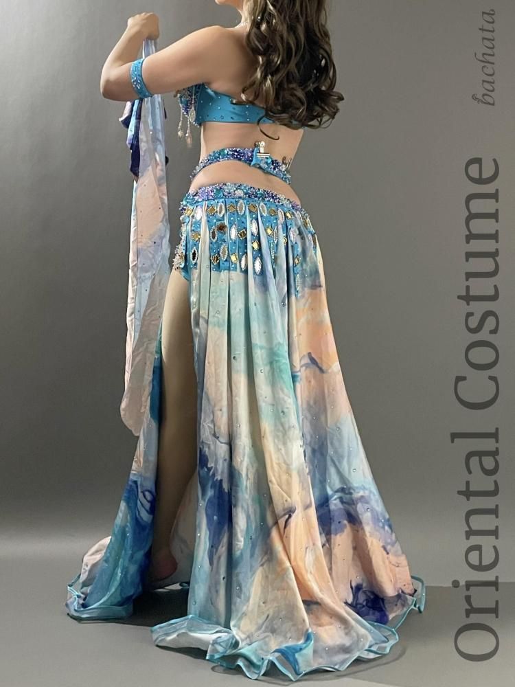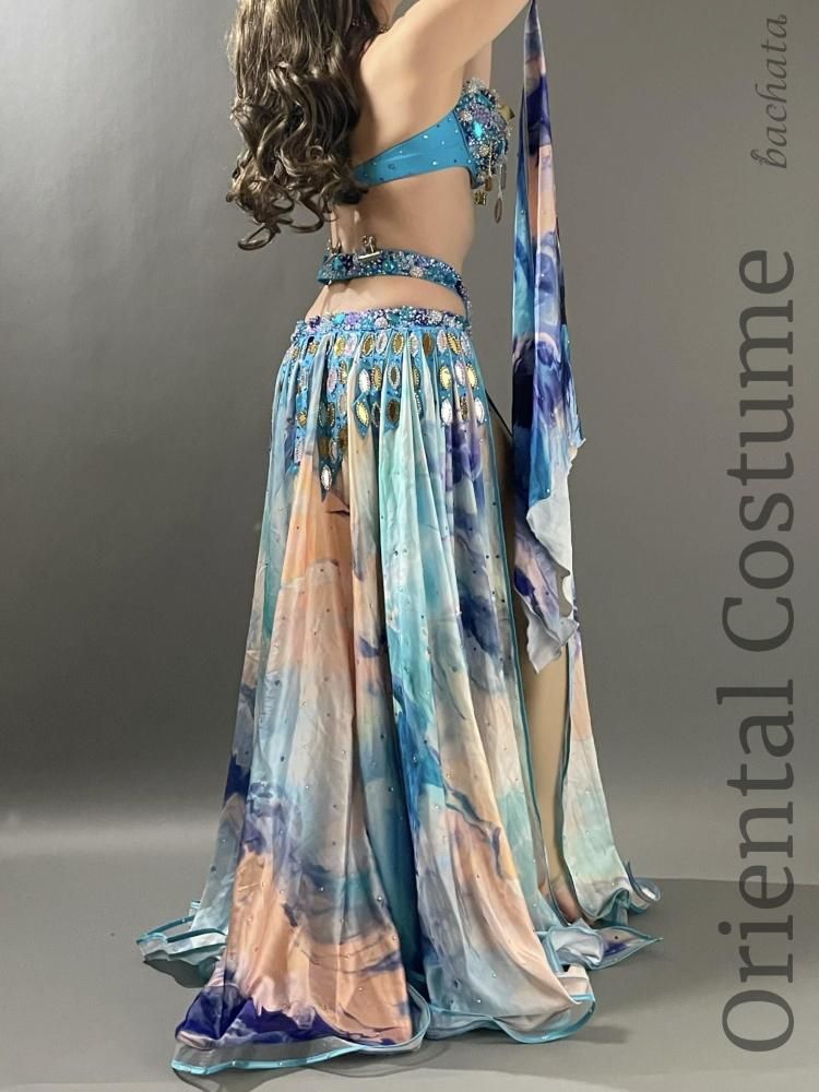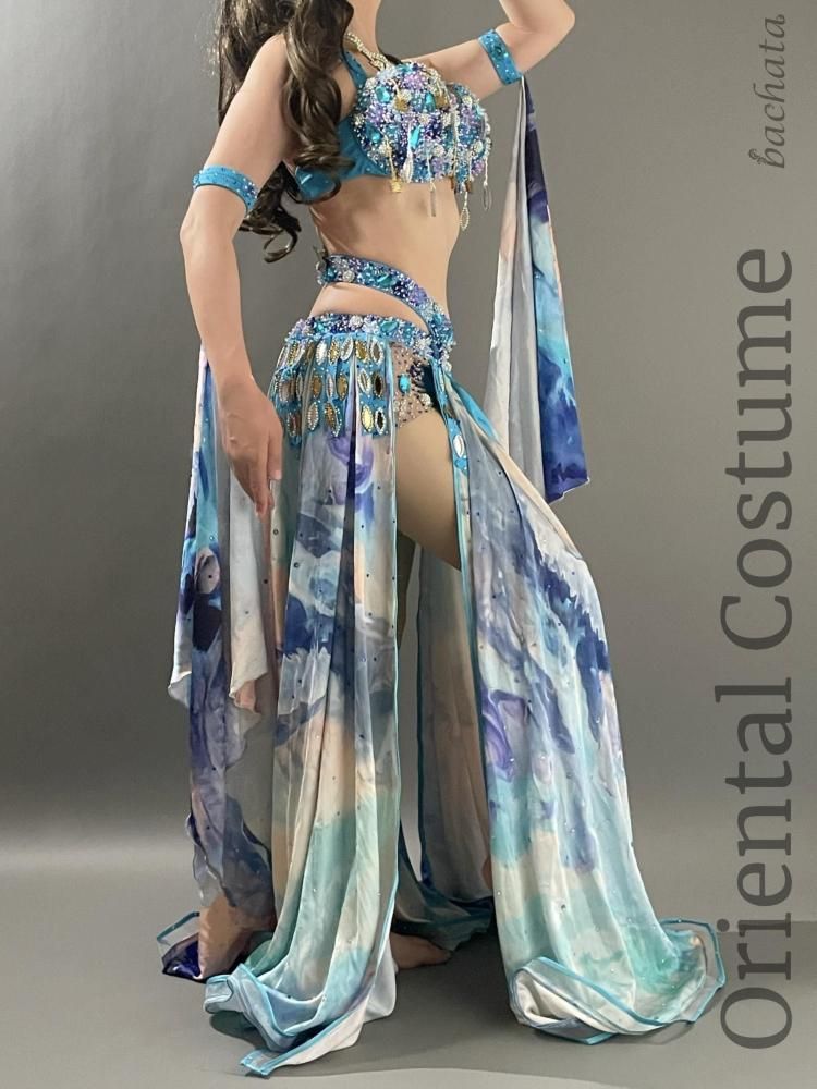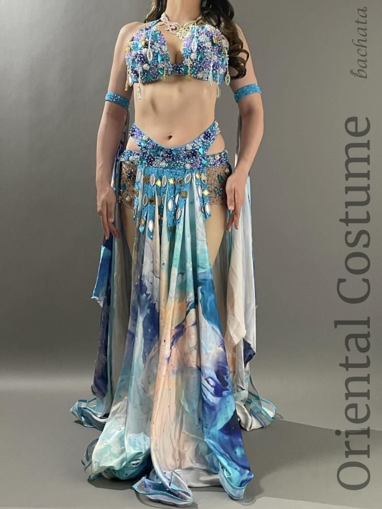 ベリーダンス衣装 Yasser ブルー マーブル CT0296 (L) オリエンタル【1点限り】