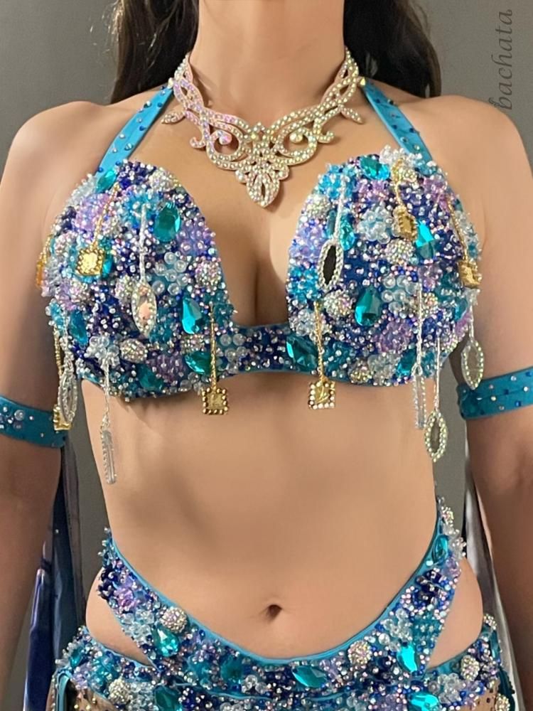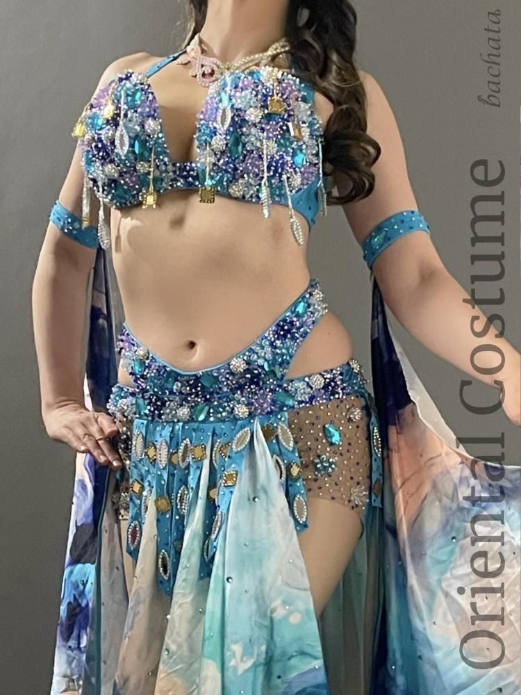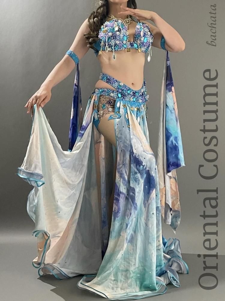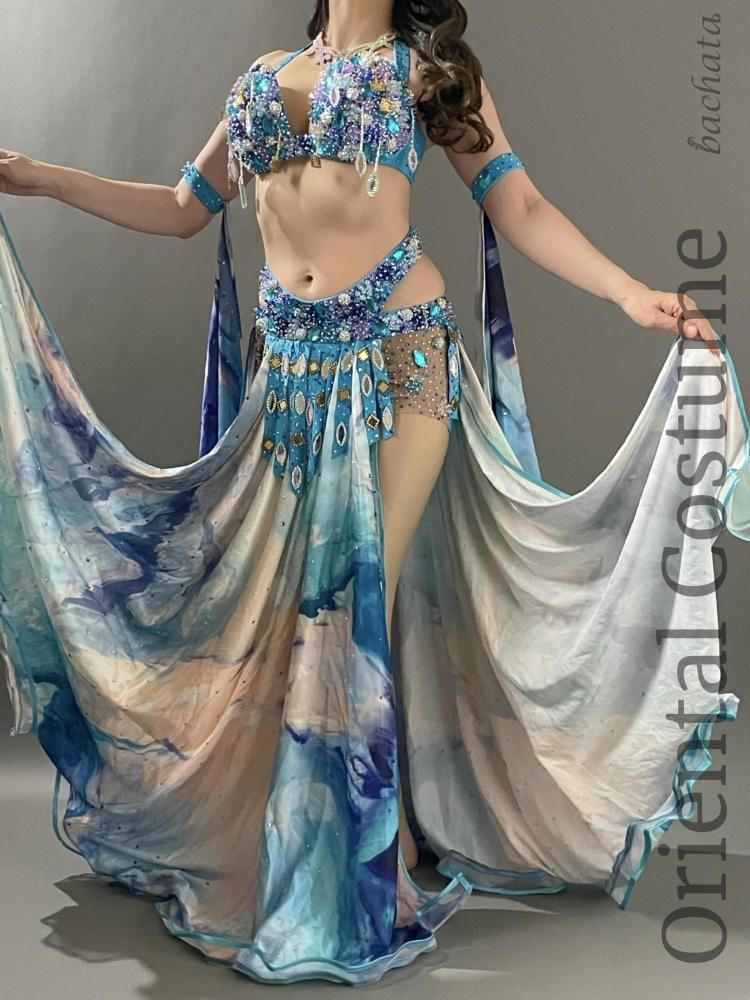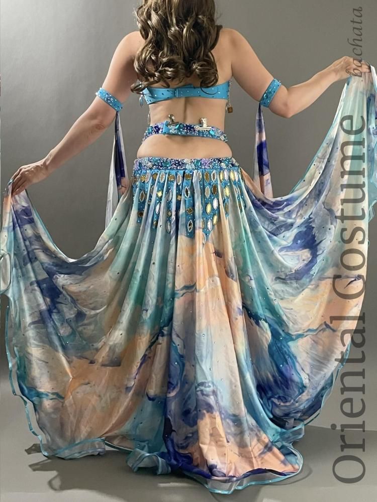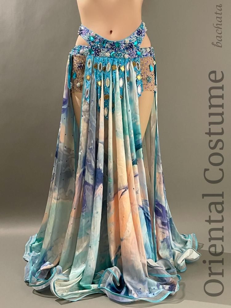 ベリーダンス衣装 Yasser ブルー マーブル CT0296 (L) オリエンタル【1点限り】