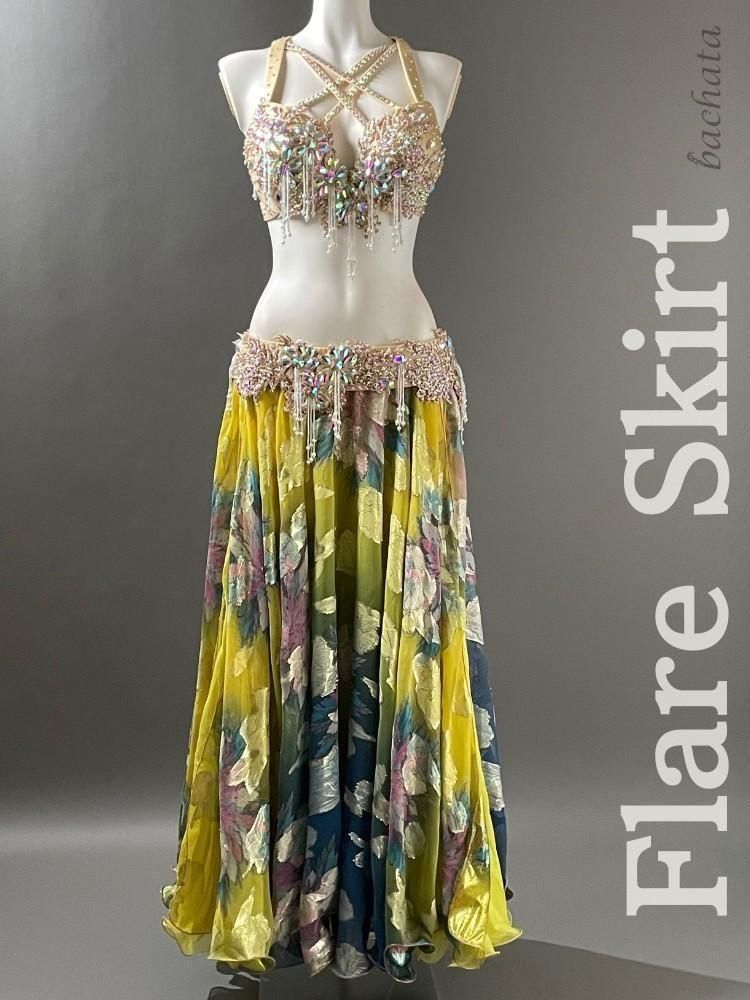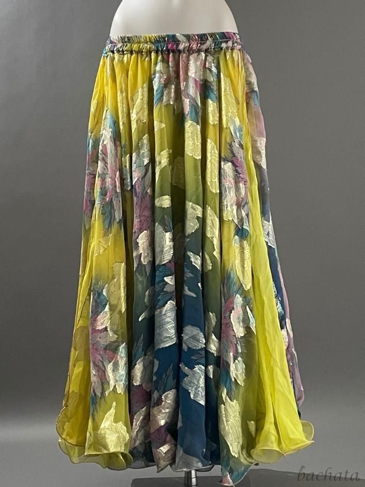 軽やかなシフォン素材が動きに合わせてふわりと広がり、ターンやステップのたびに美しいシルエットを演出。