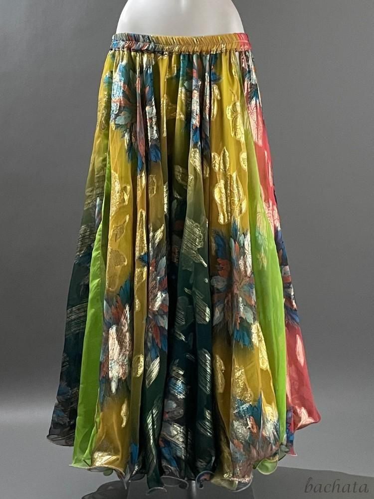 軽やかなシフォン素材が動きに合わせてふわりと広がり、ターンやステップのたびに美しいシルエットを演出。