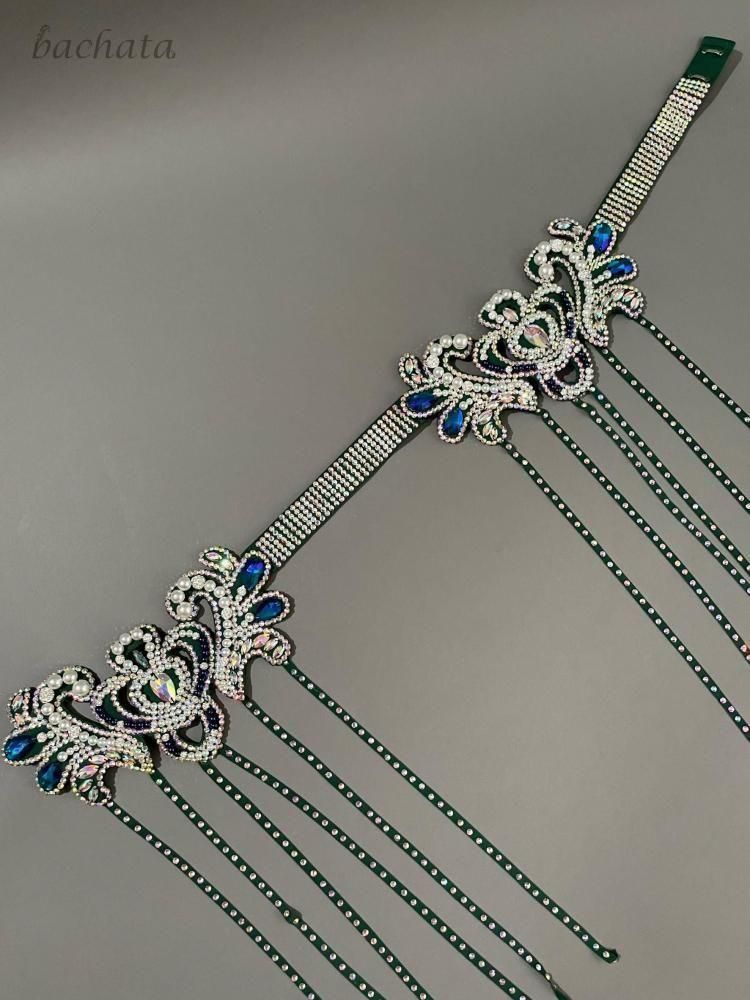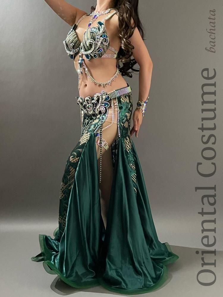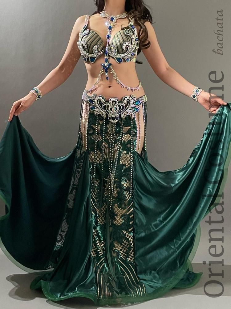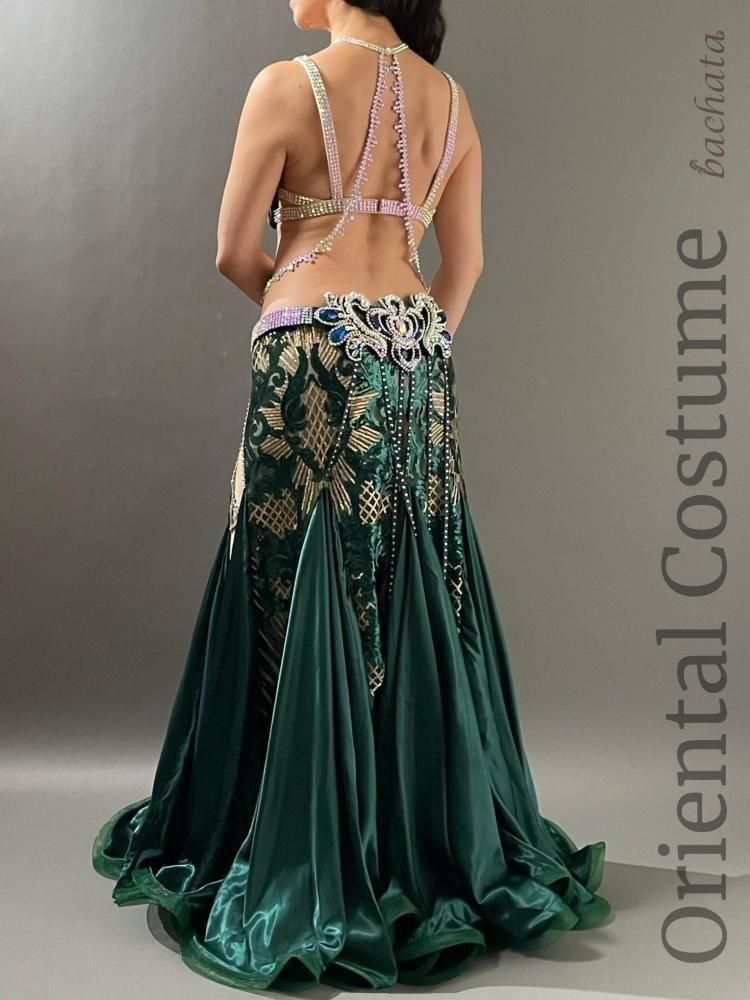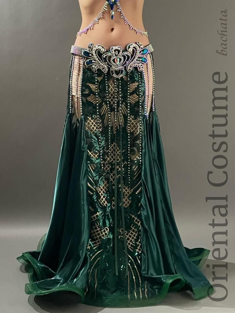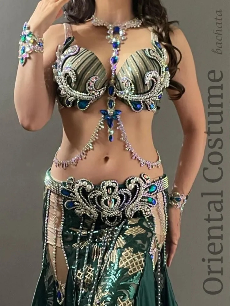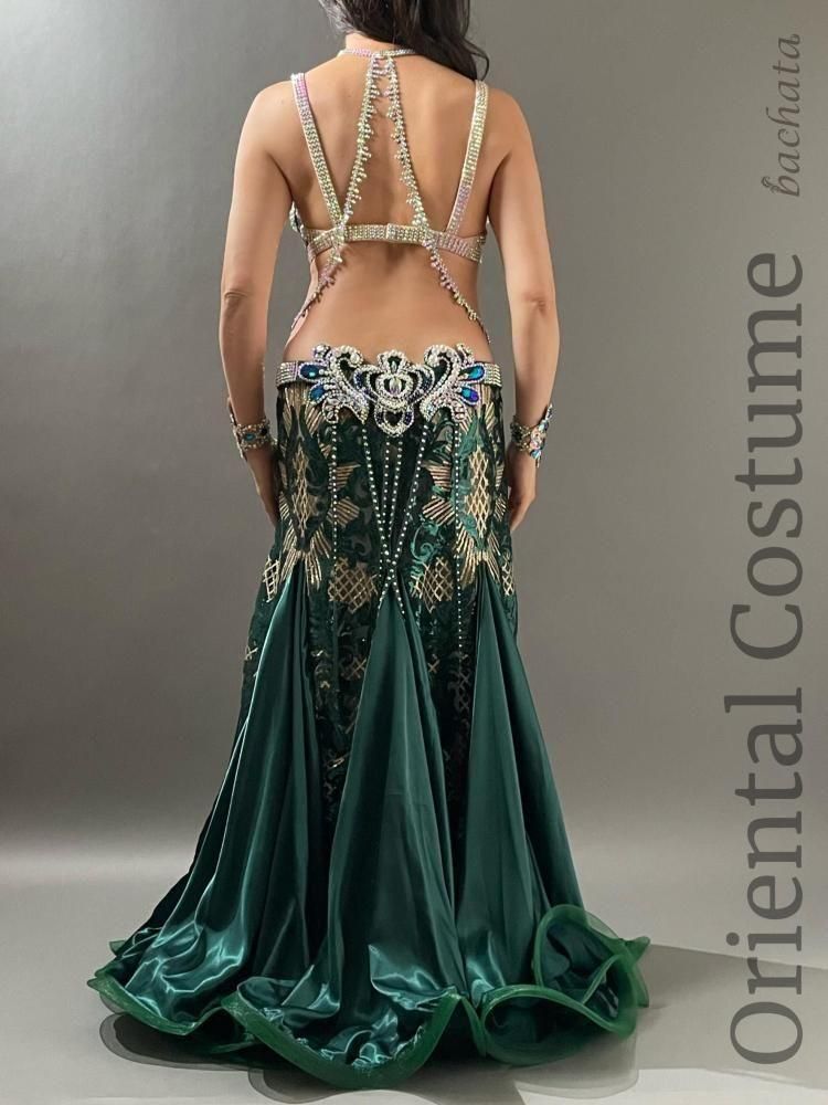 深みのあるディープグリーンとゴールドの組み合わせが、落ち着きと華やかさを兼ね備えた大人ゴージャスなブラベルトタイプの衣装です。