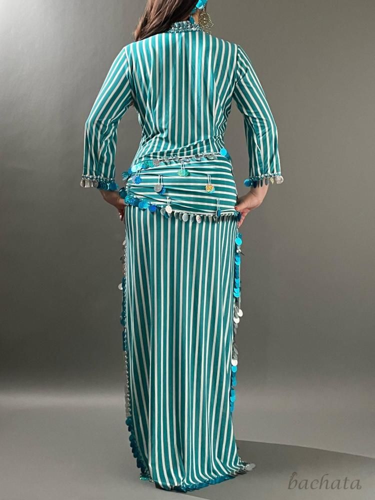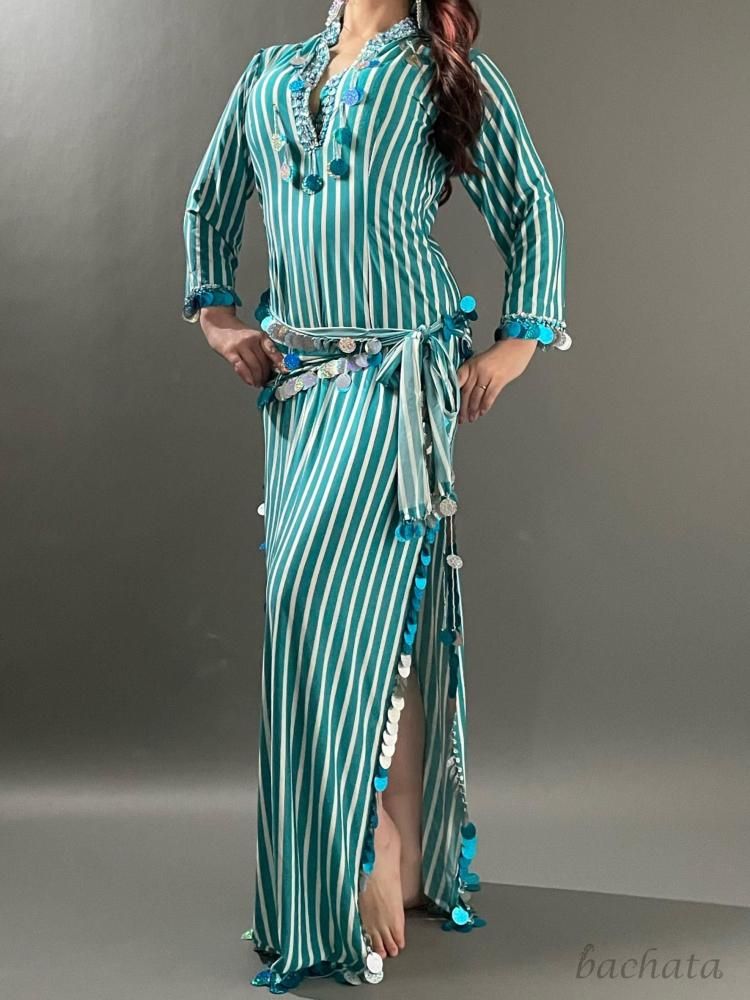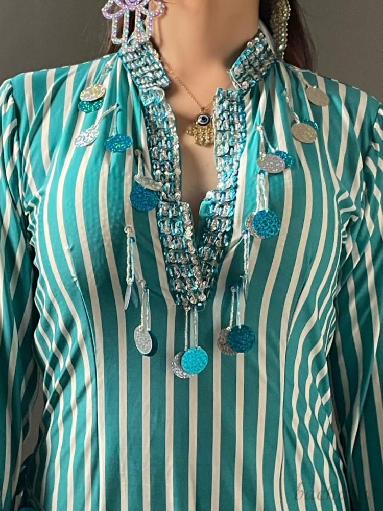 ピーコックグリーン×ホワイトのストライプが印象的なYasserサイーディードレス。