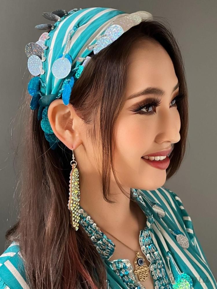 清涼感のあるカラーに、シルバー&ライトブルーのスパンコールがアクセントとなり、動くたびにキラキラ輝きます✨