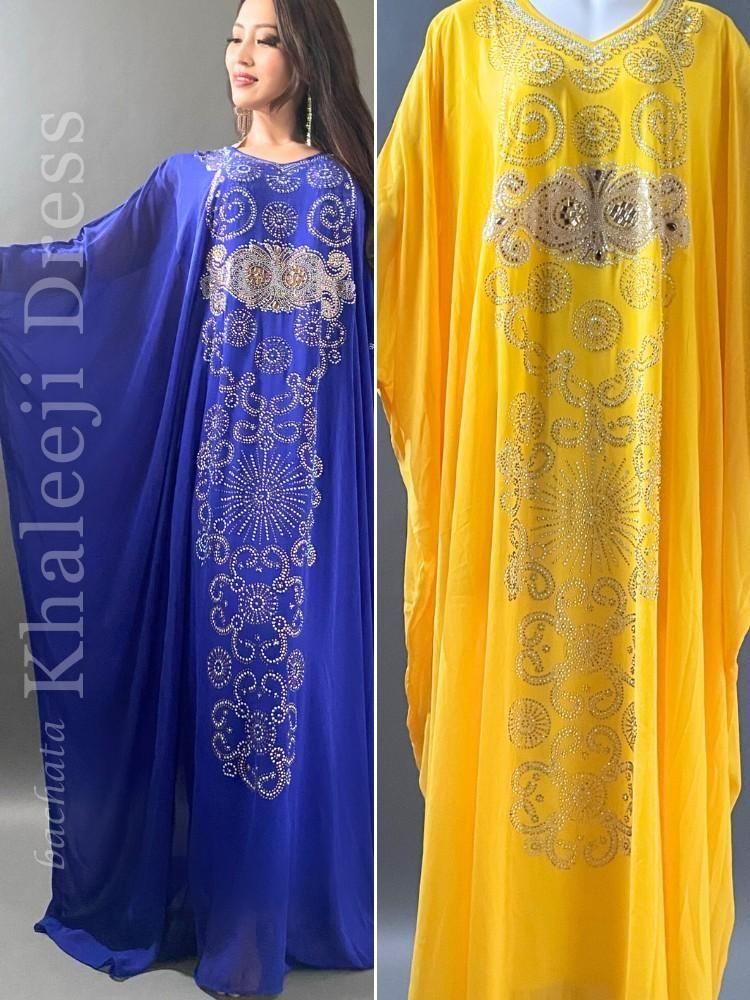 カラフルで華やかな刺繍が目を引く、上品でエレガントなハリージドレス。