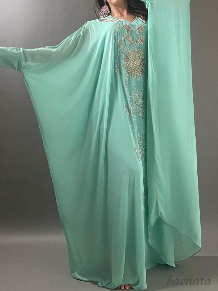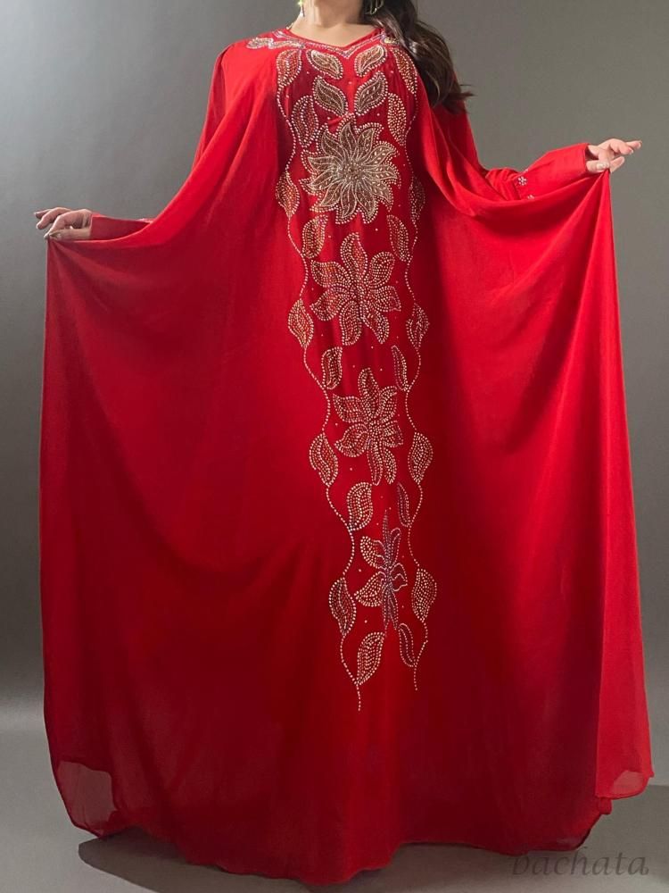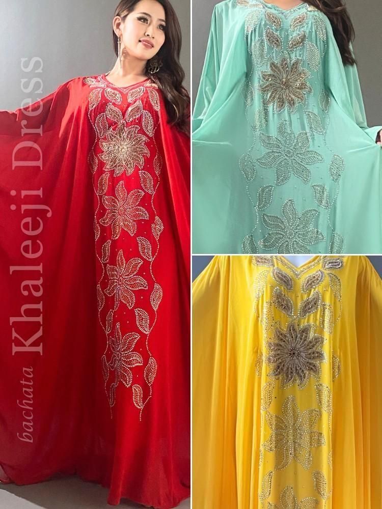 カラフルで華やかな刺繍が目を引く、上品でエレガントなハリージドレス。