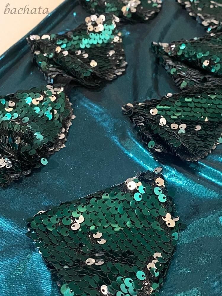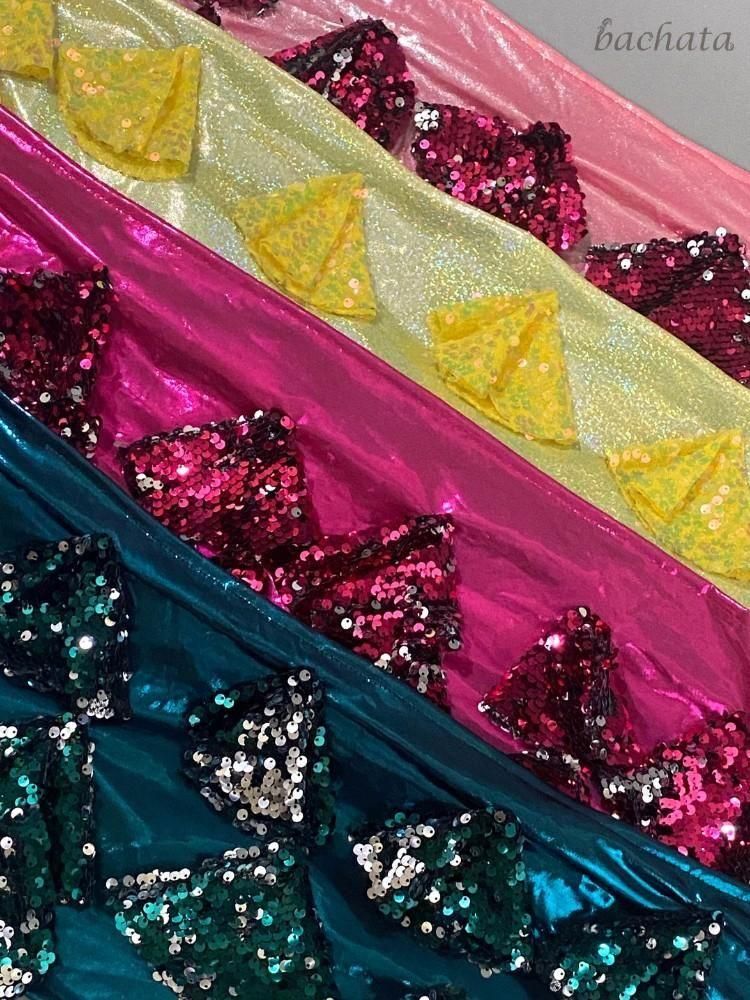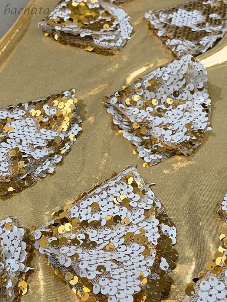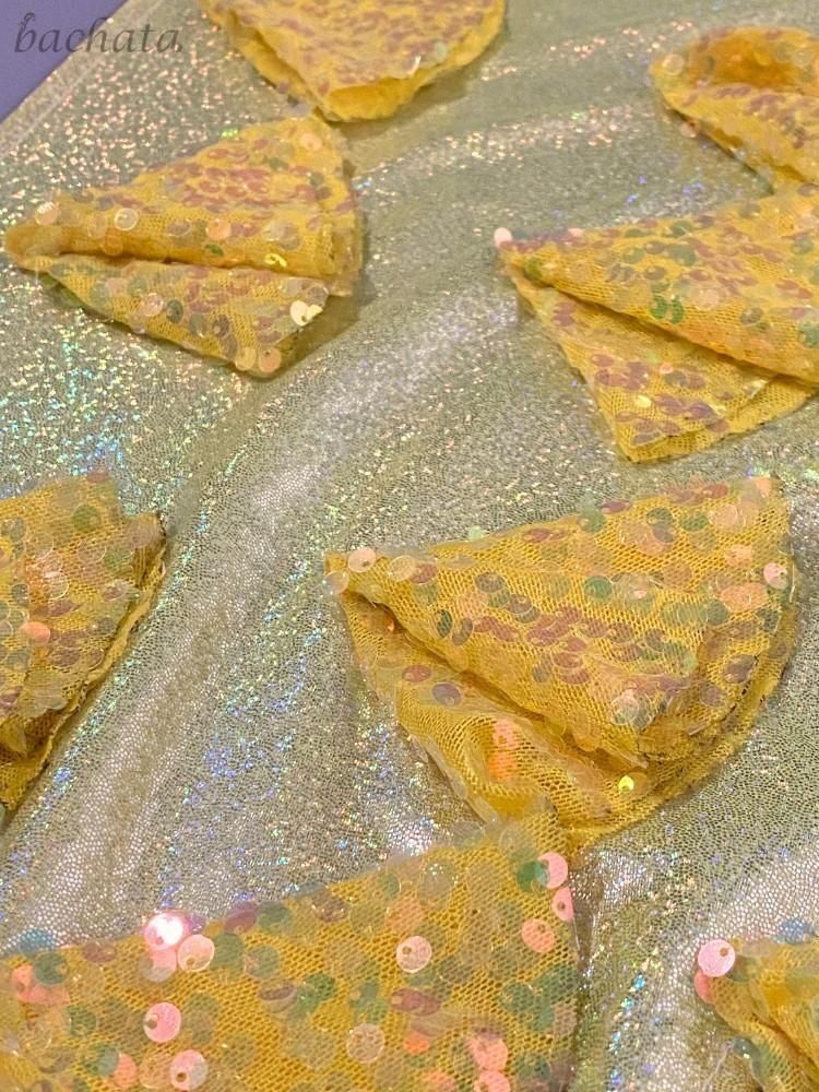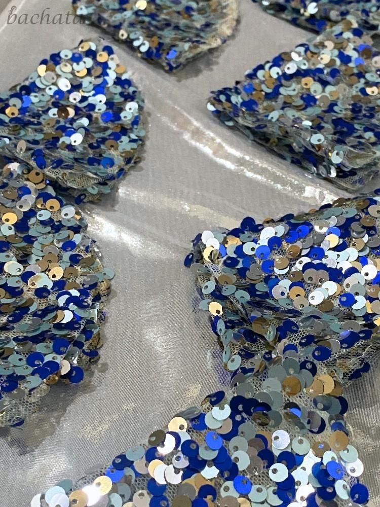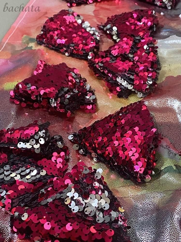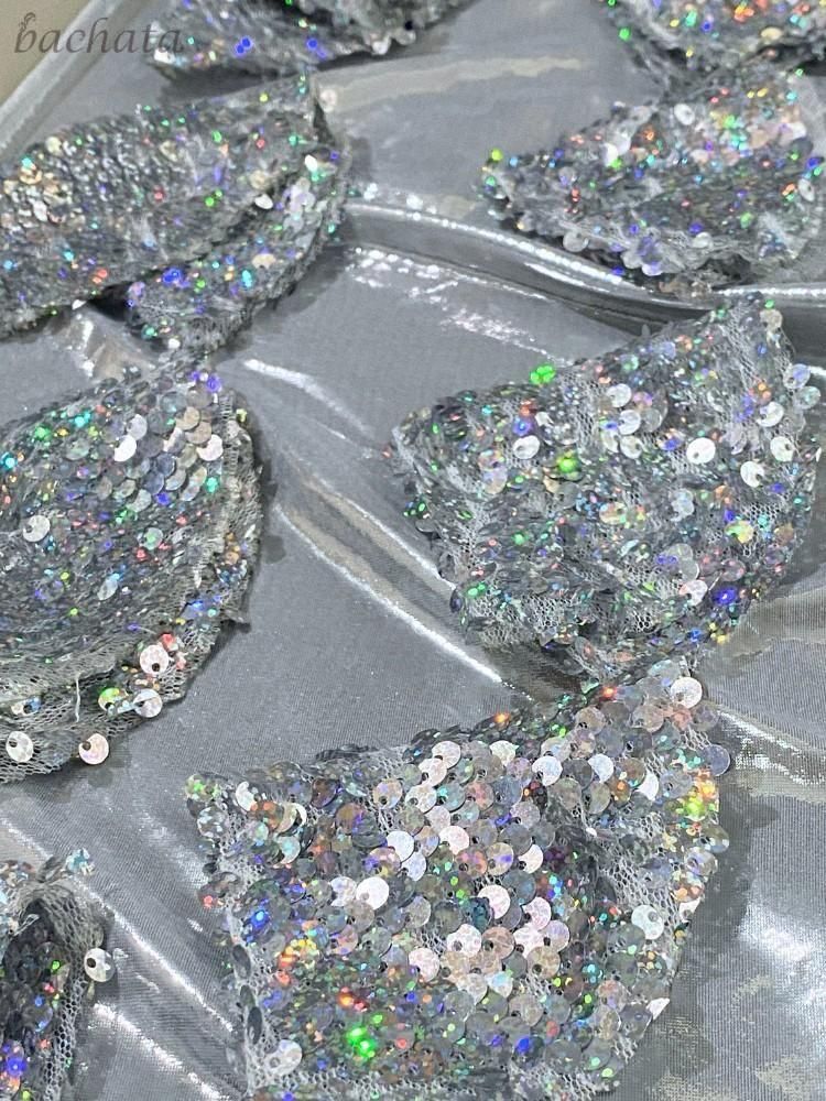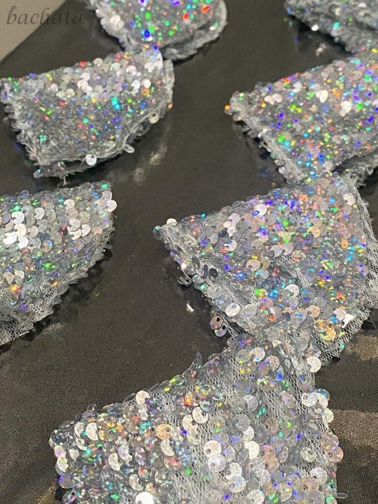 布に一つひとつ手縫いであしらわれたスパンコールモチーフが、
