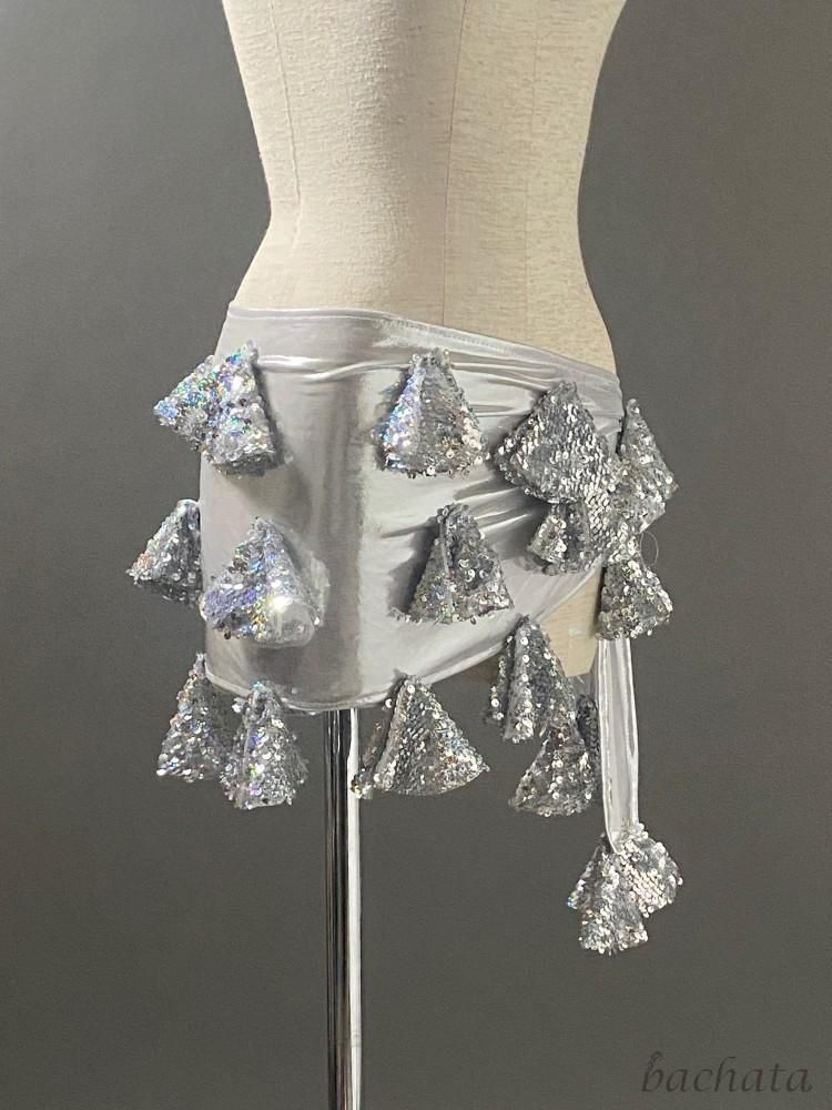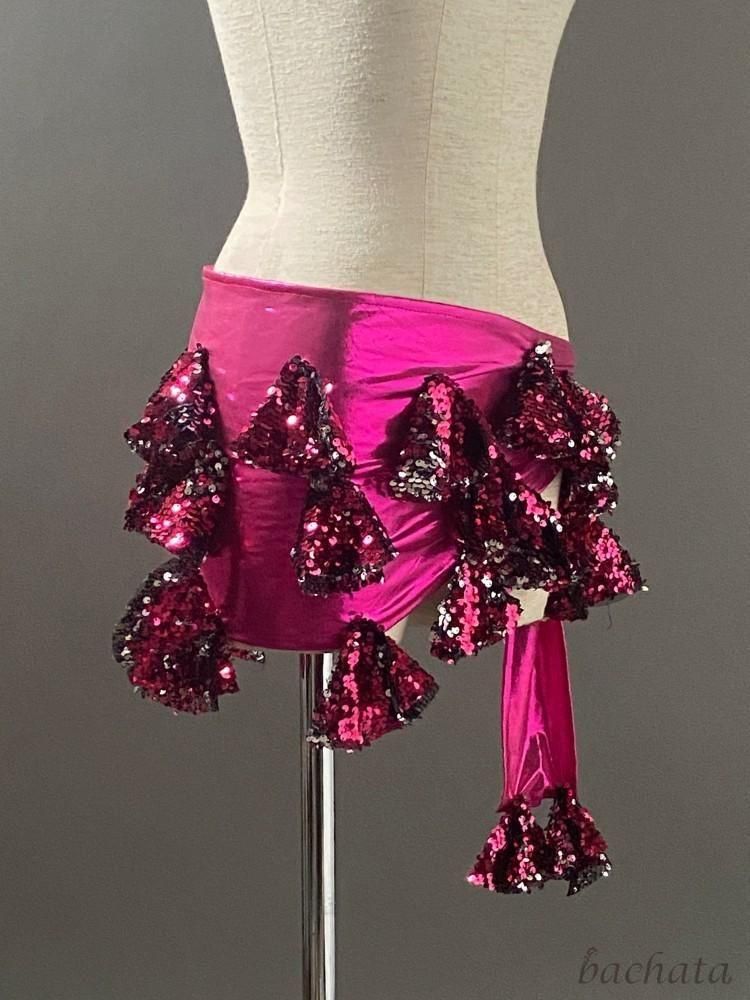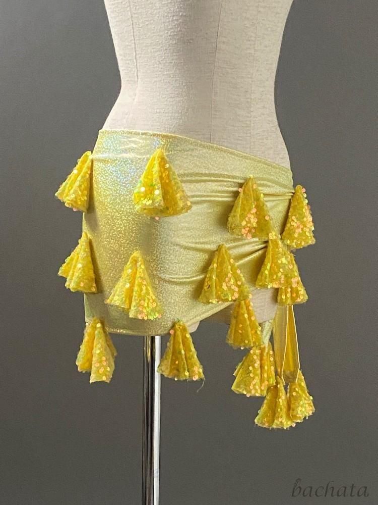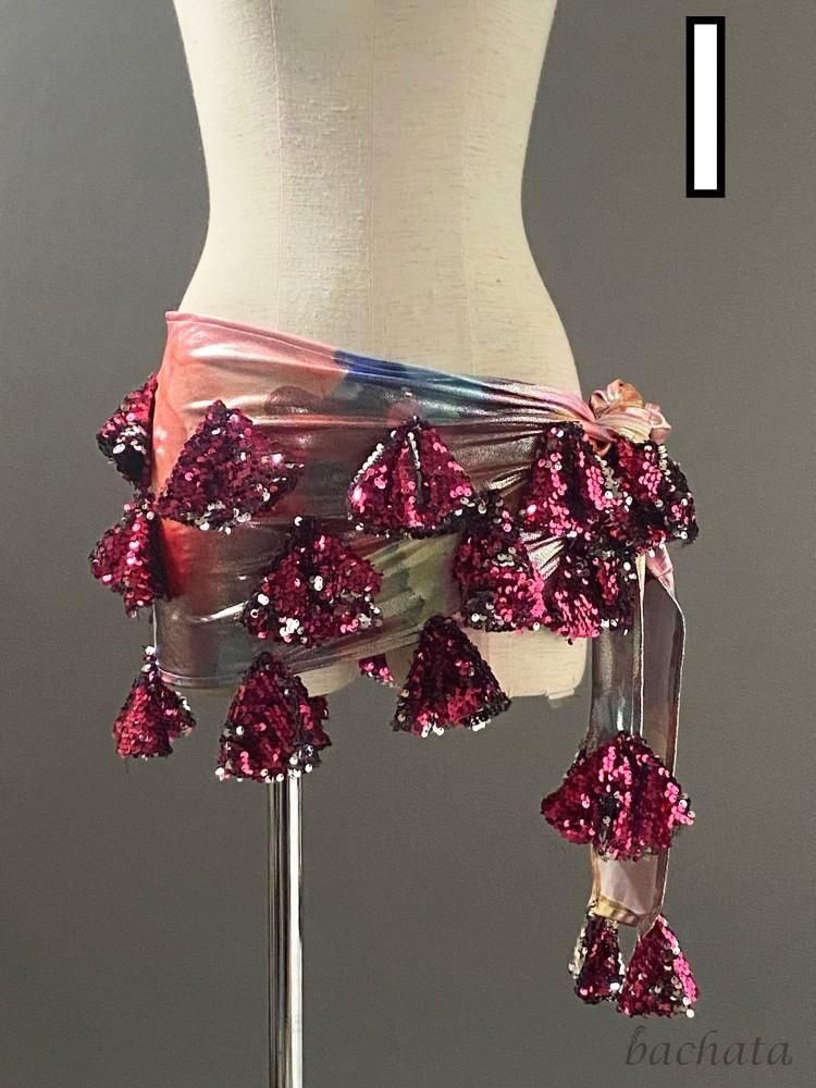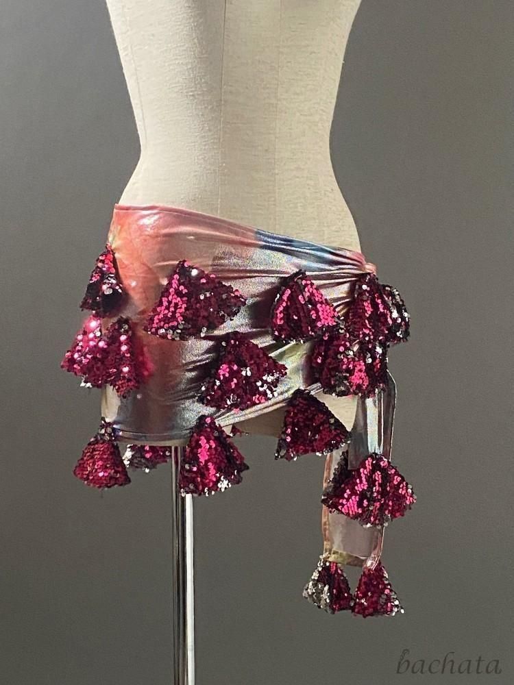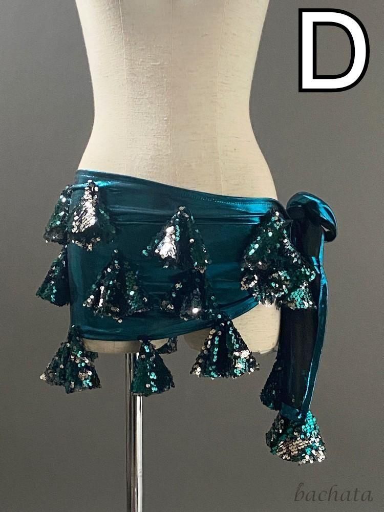 光を受けてキラキラと輝く、エジプト製のスパンコールタッセル風ヒップスカーフです。