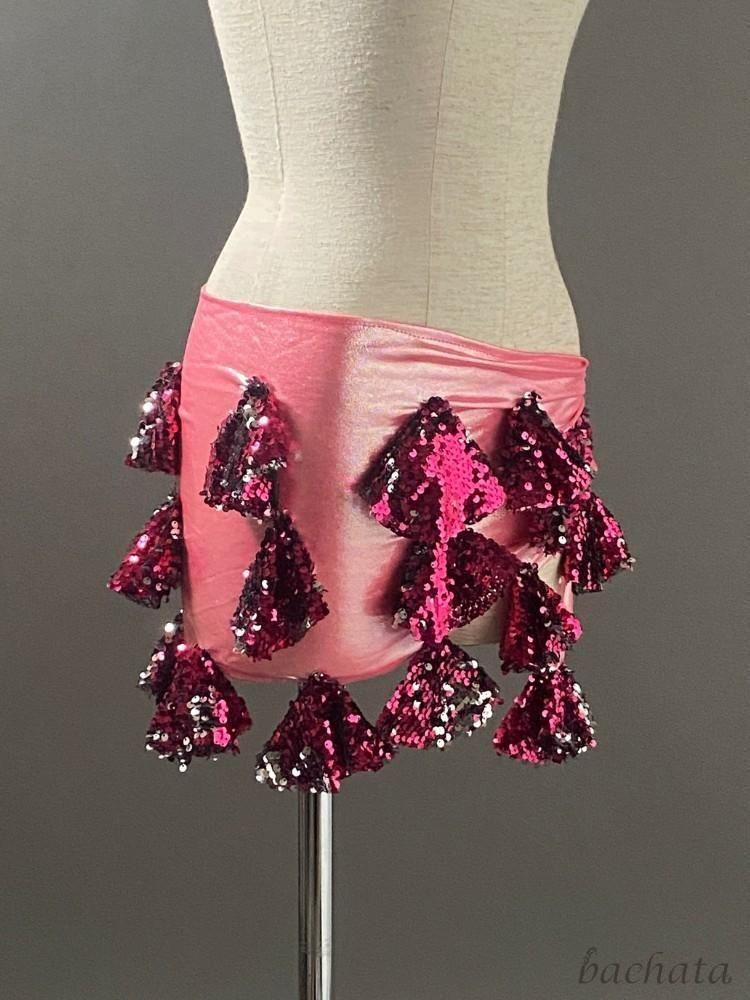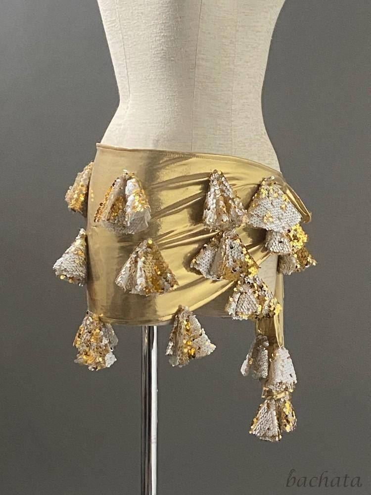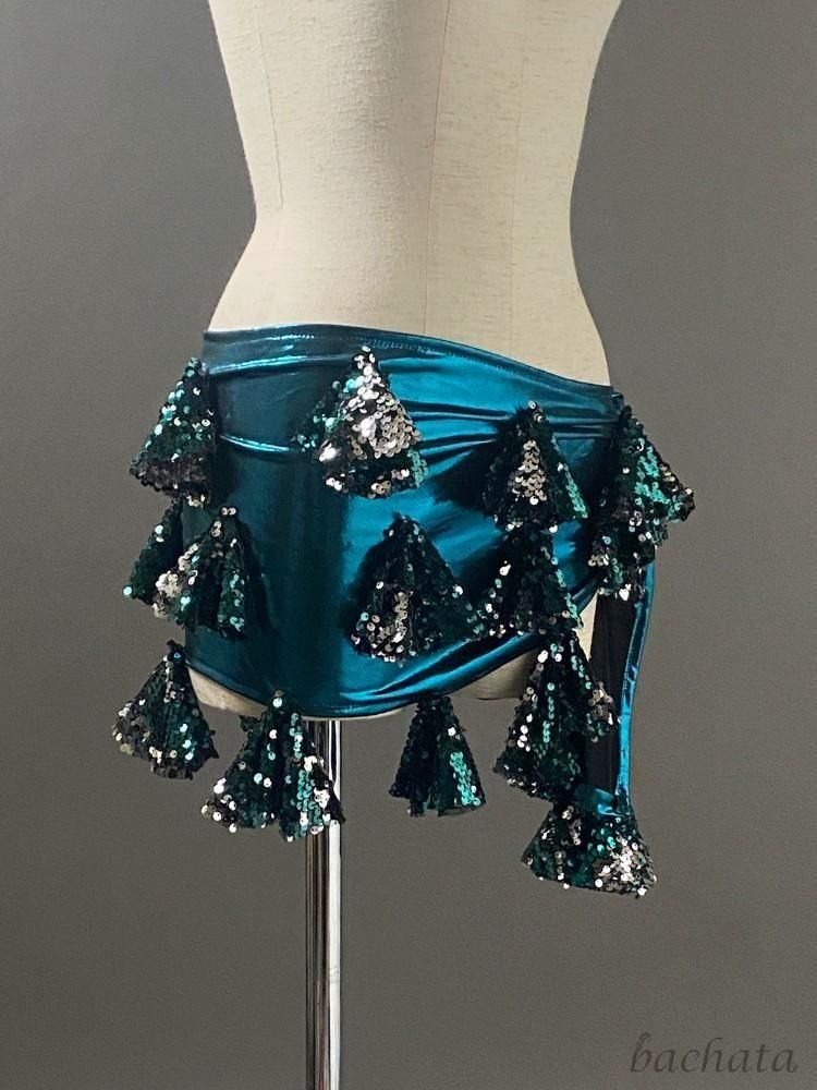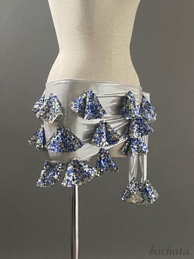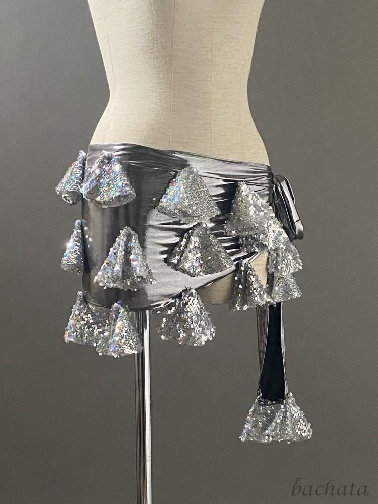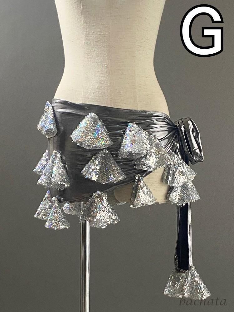 光を受けてキラキラと輝く、エジプト製のスパンコールタッセル風ヒップスカーフです。