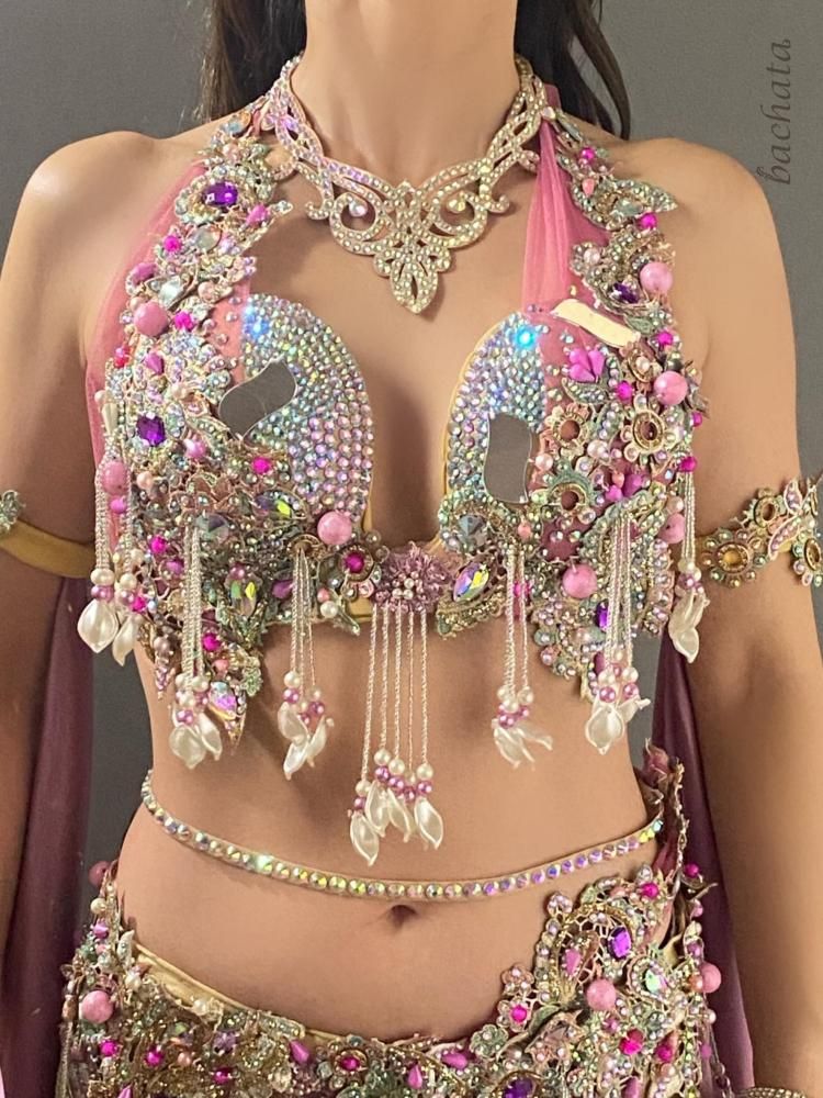 大人っぽいローズピンクに、フラワーモチーフの刺繍と花びらのフリンジがたっぷり✨