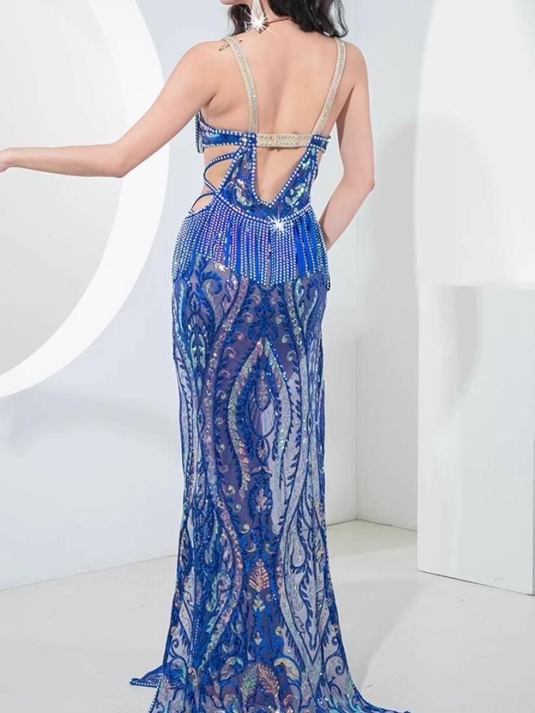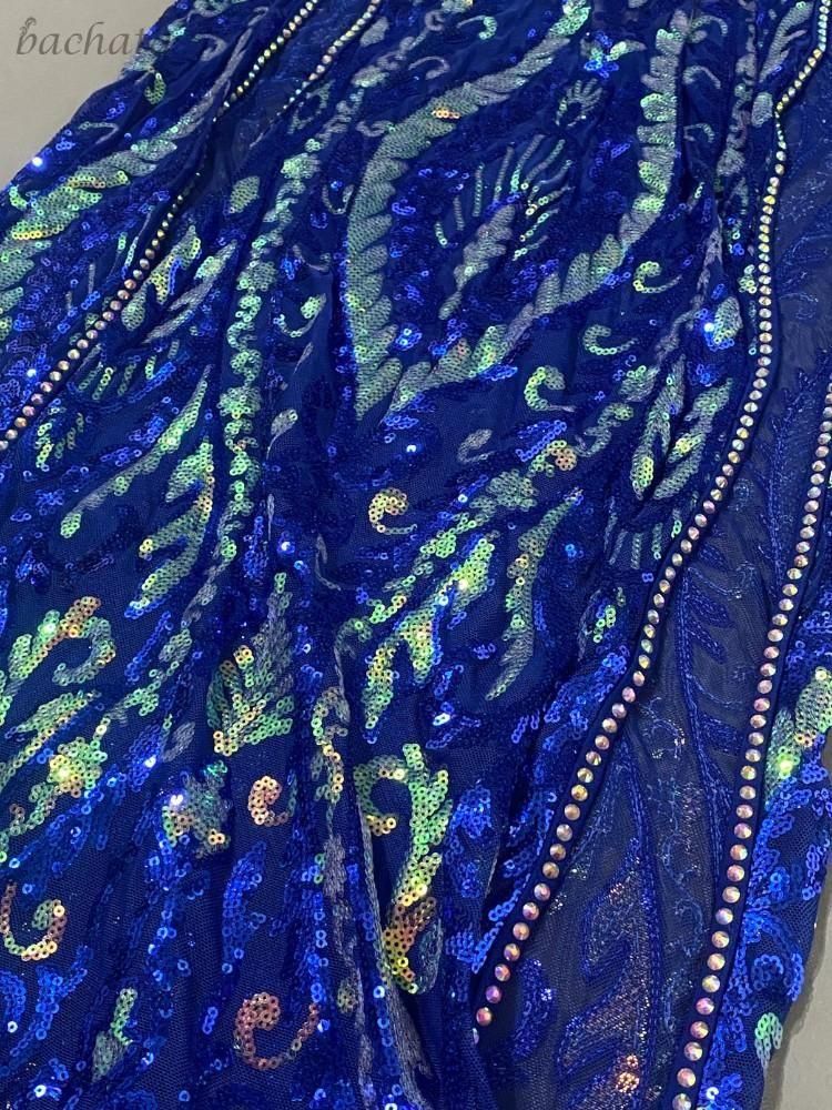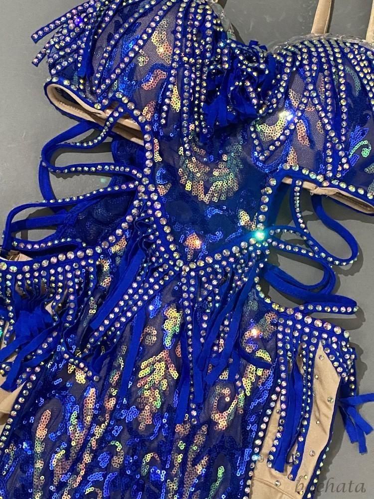 ロイヤルブルーに、オーロラスパンコールがきらきら輝く華やかロイヤルブルーの“推しつなぎ”です♡